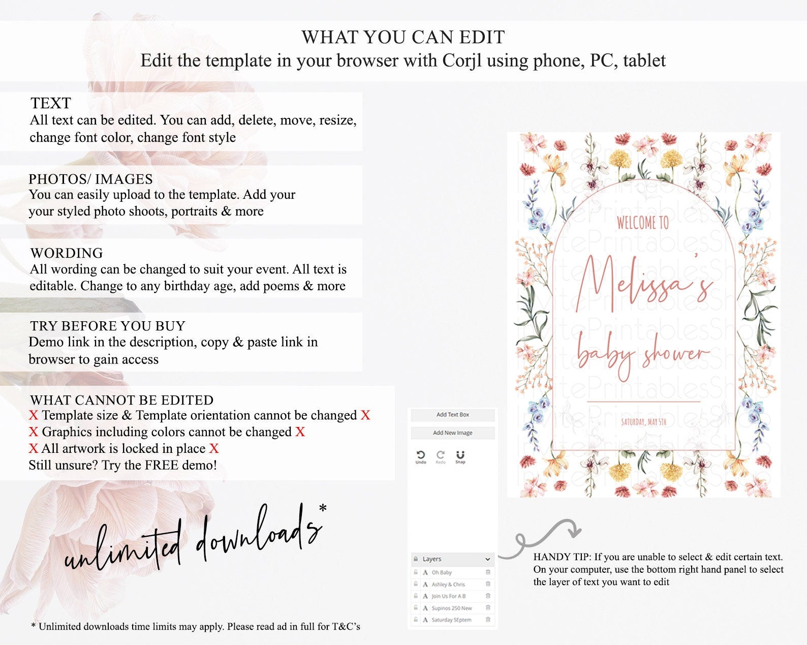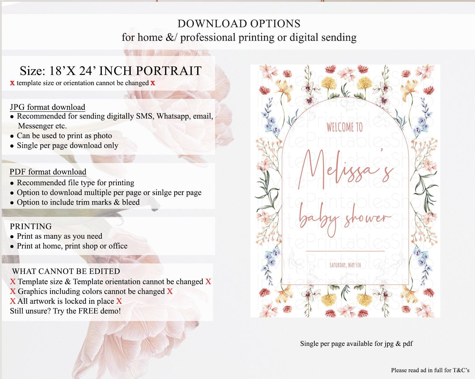 Secret Garden Baby Shower Welcome Sign Wildflower Welcome Board Pastel Flower Garden Welcome Poster Boho Wildflower Welcome Sign D10682