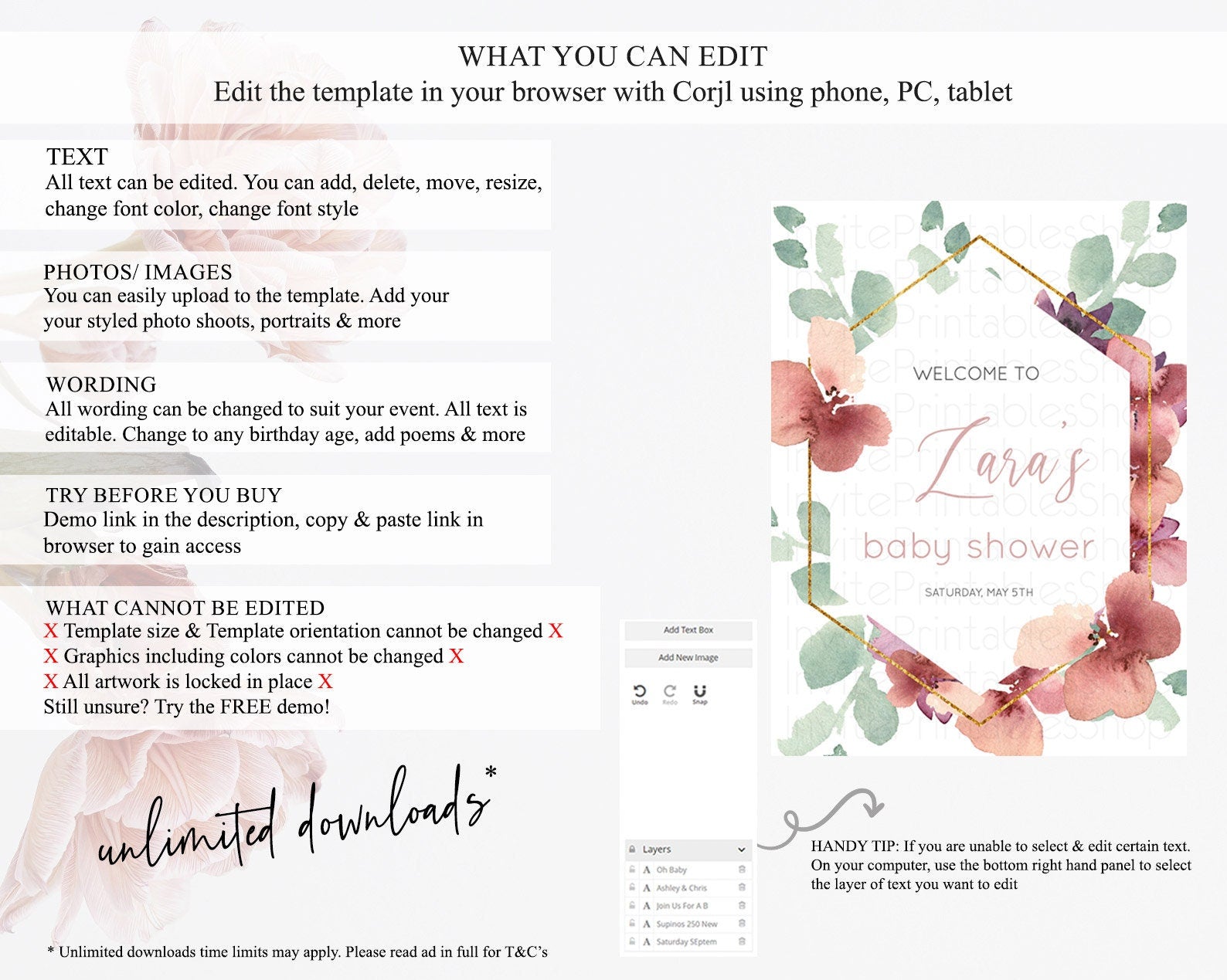 • After purchase, Corjl emails your editing link. Allow up to 15 minutes for delivery.