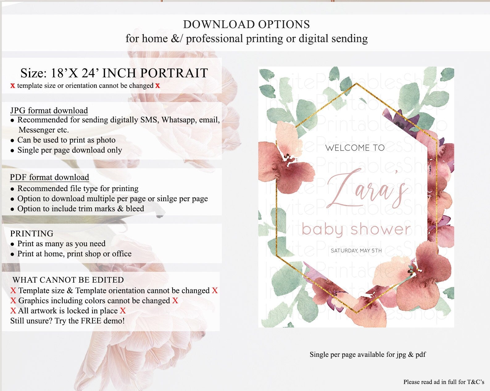 • Template size & orientation cannot be changed. Please use the demo link to confirm this product suits your needs.