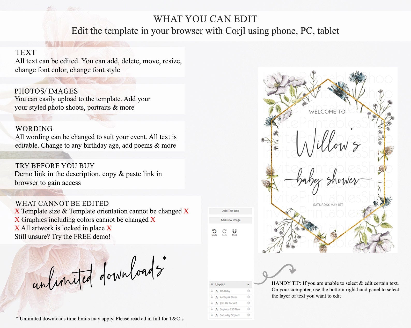 • After purchase, Corjl emails your editing link. Allow up to 15 minutes for delivery.