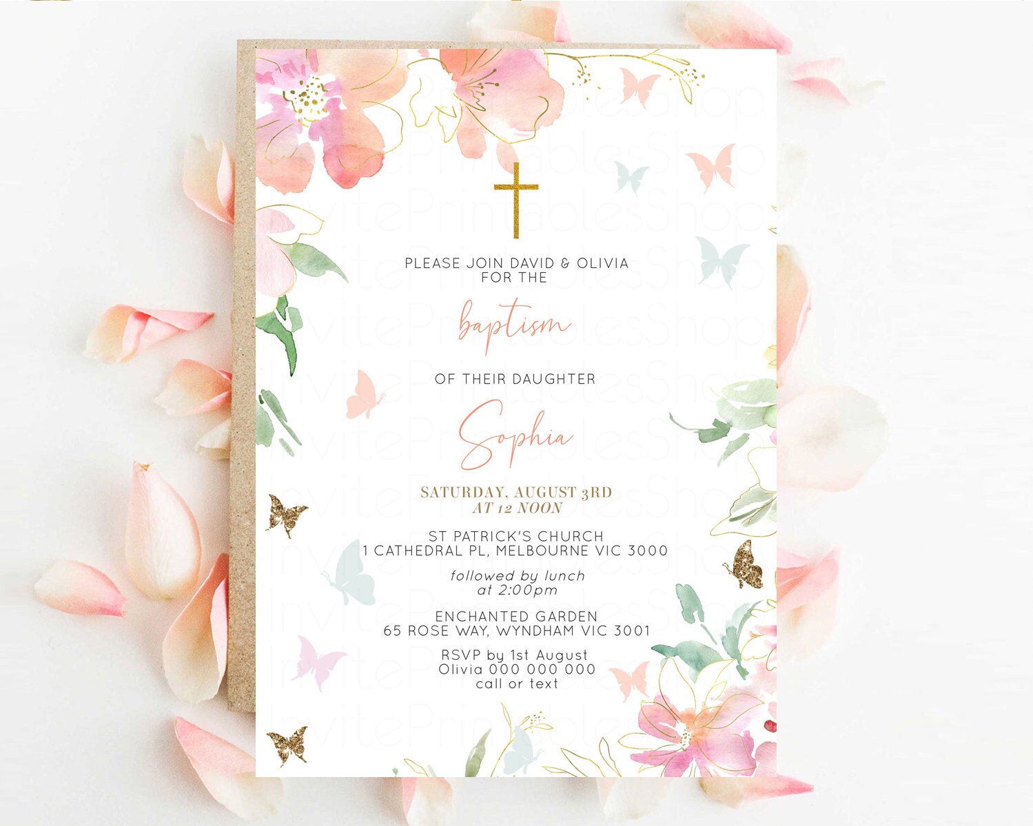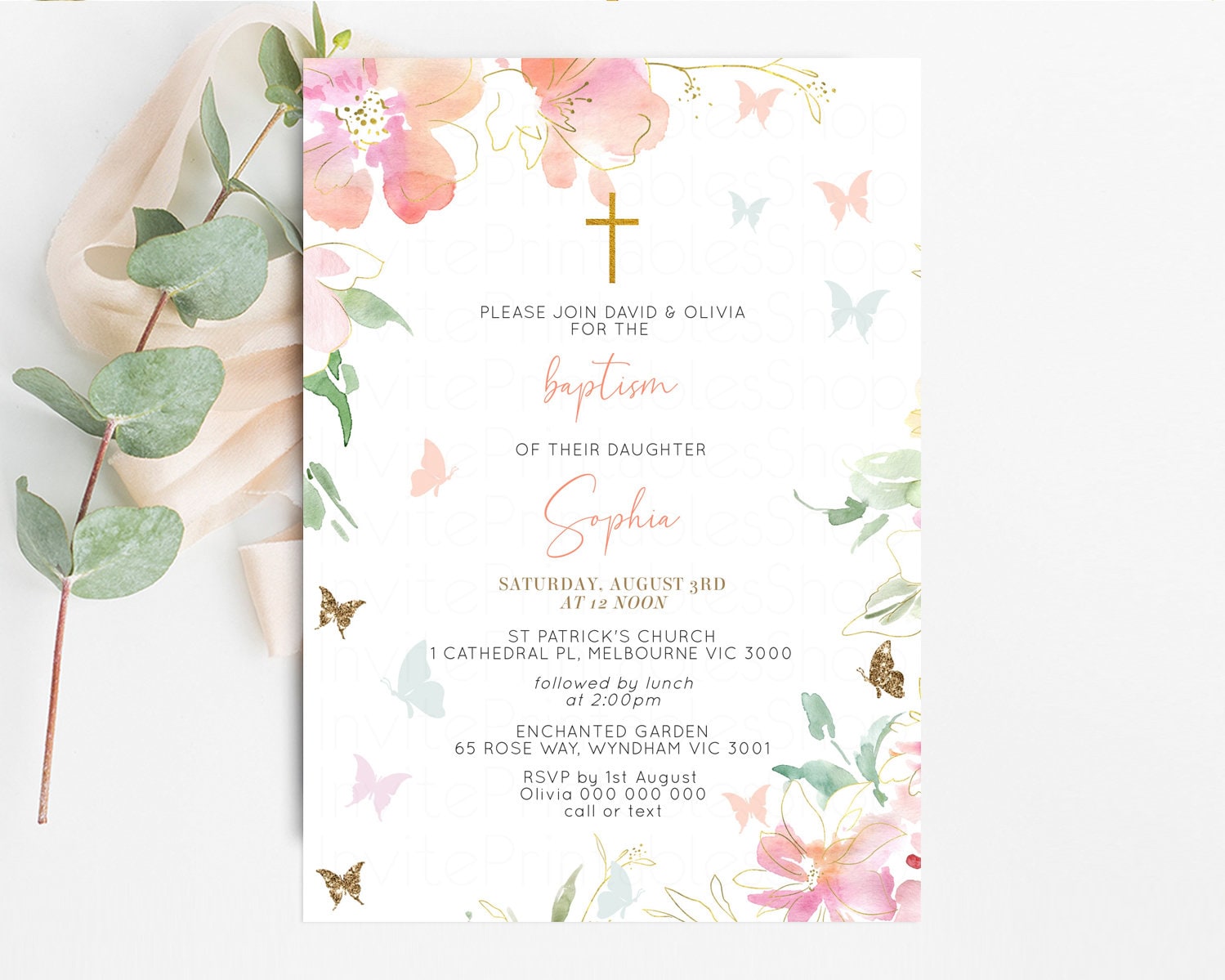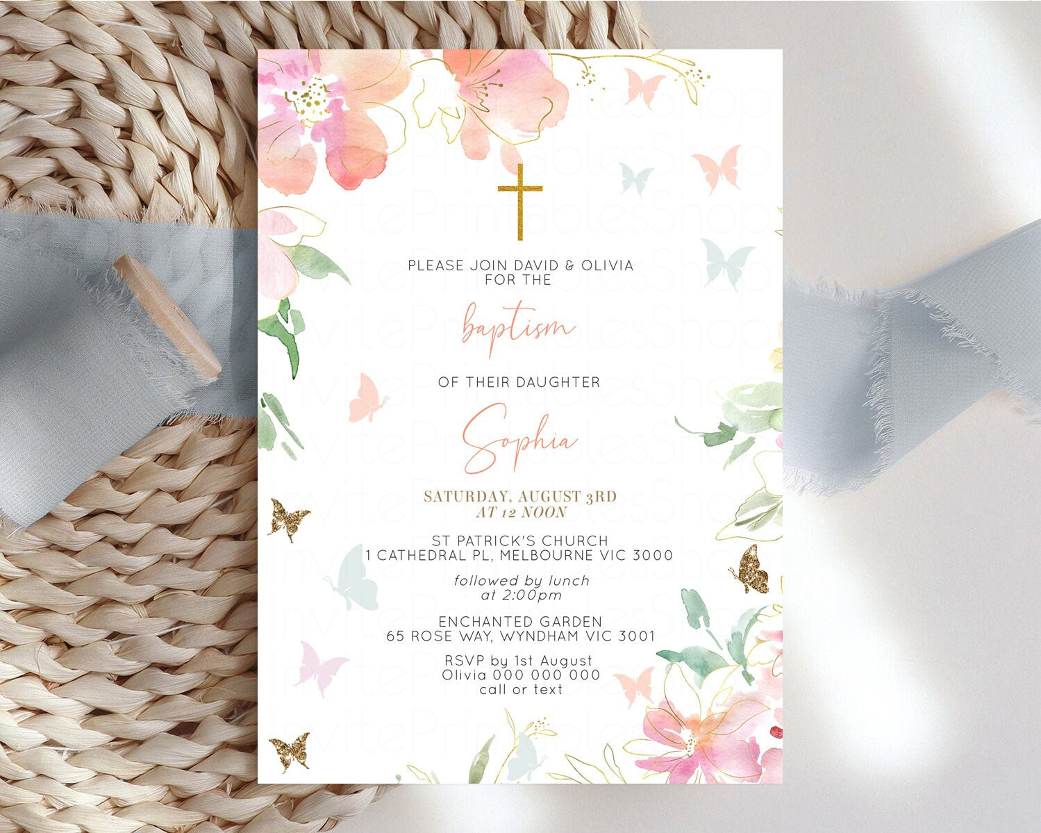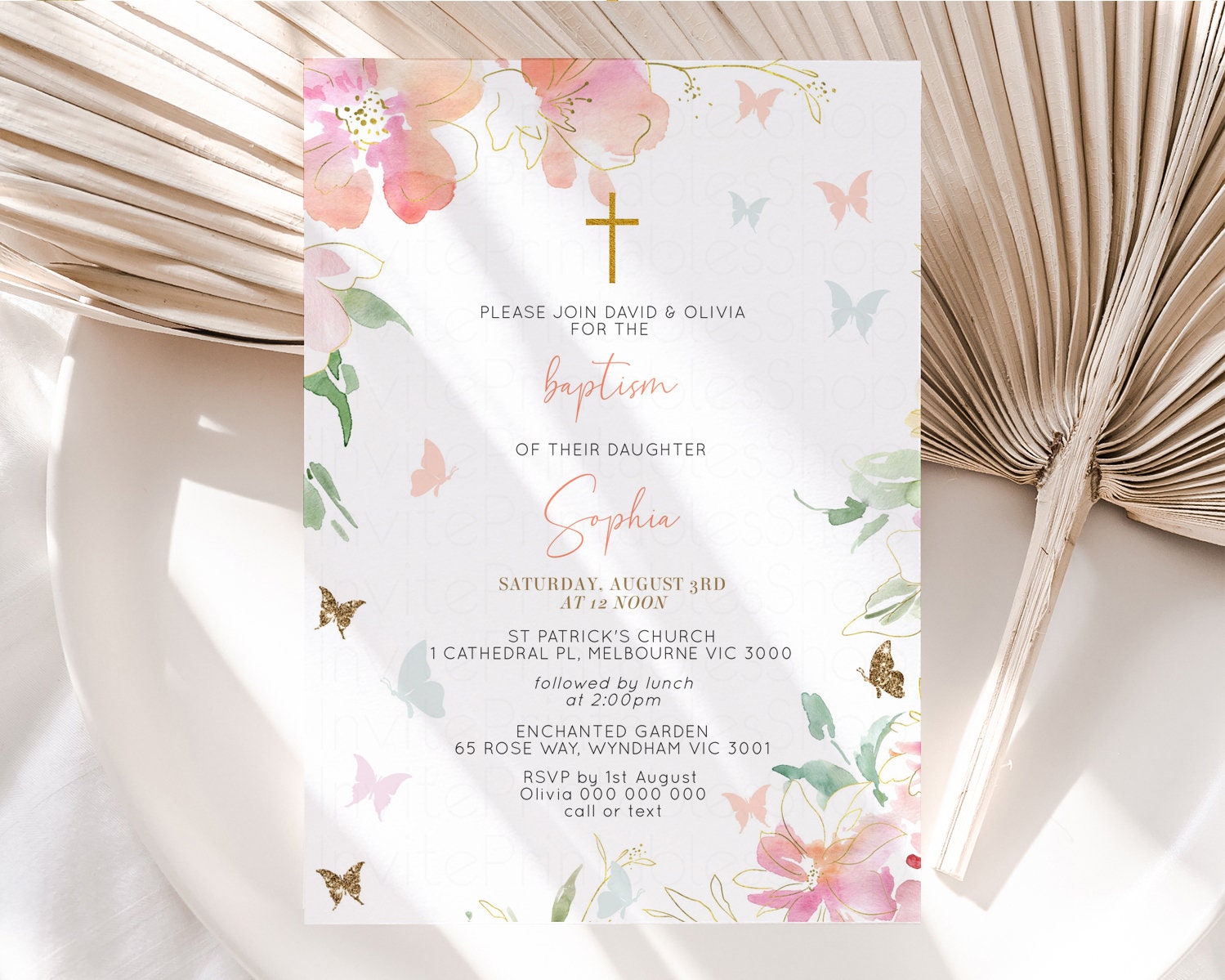Secret Garden Baptism Invitation Floral Garden Christening Invite Enchanted Forest Invite Whimsical Floral Invite Botanical Pastel Pink 91