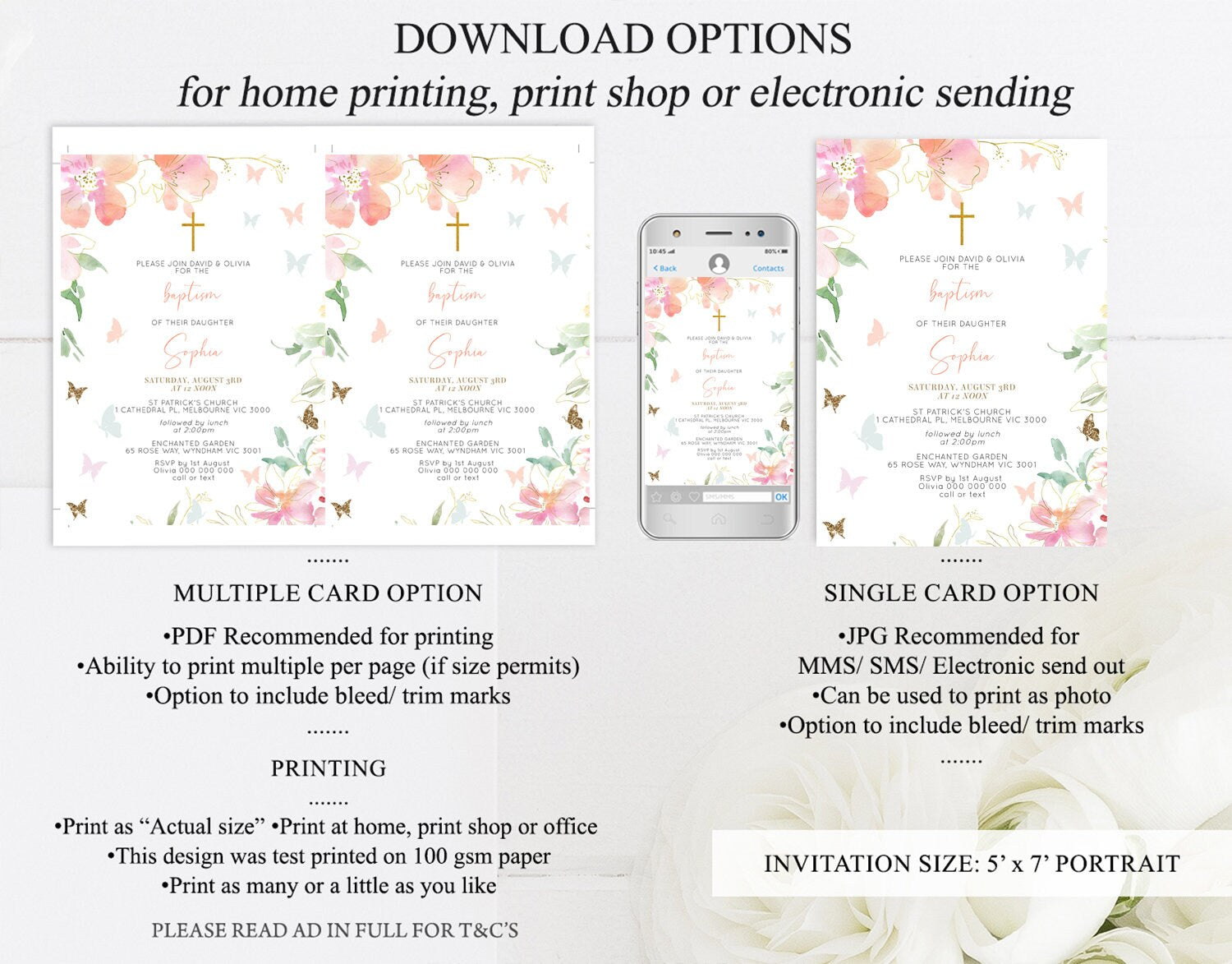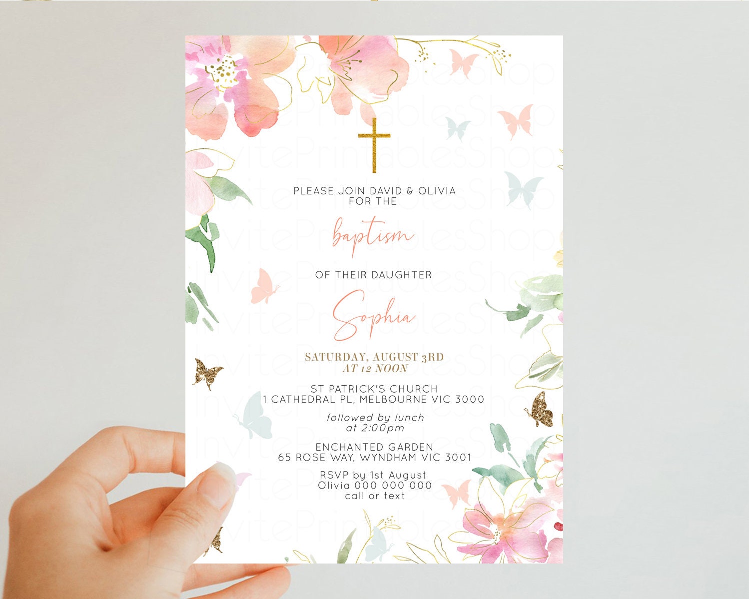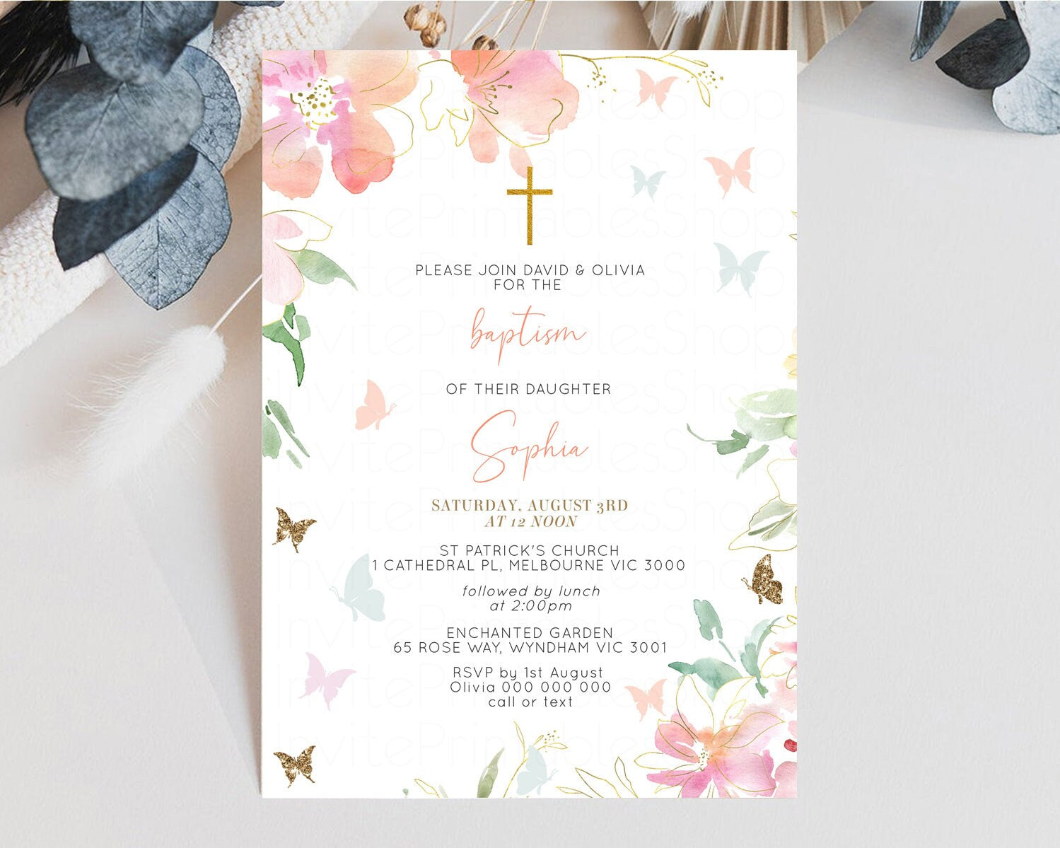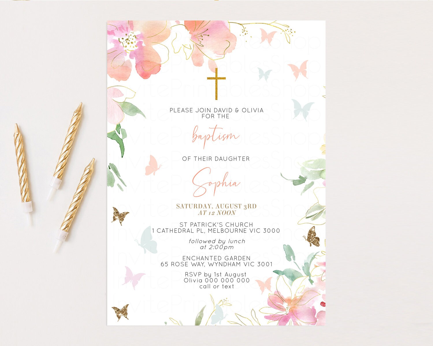 Secret Garden Baptism Invitation Floral Garden Christening Invite Enchanted Forest Invite Whimsical Floral Invite Botanical Pastel Pink 91
