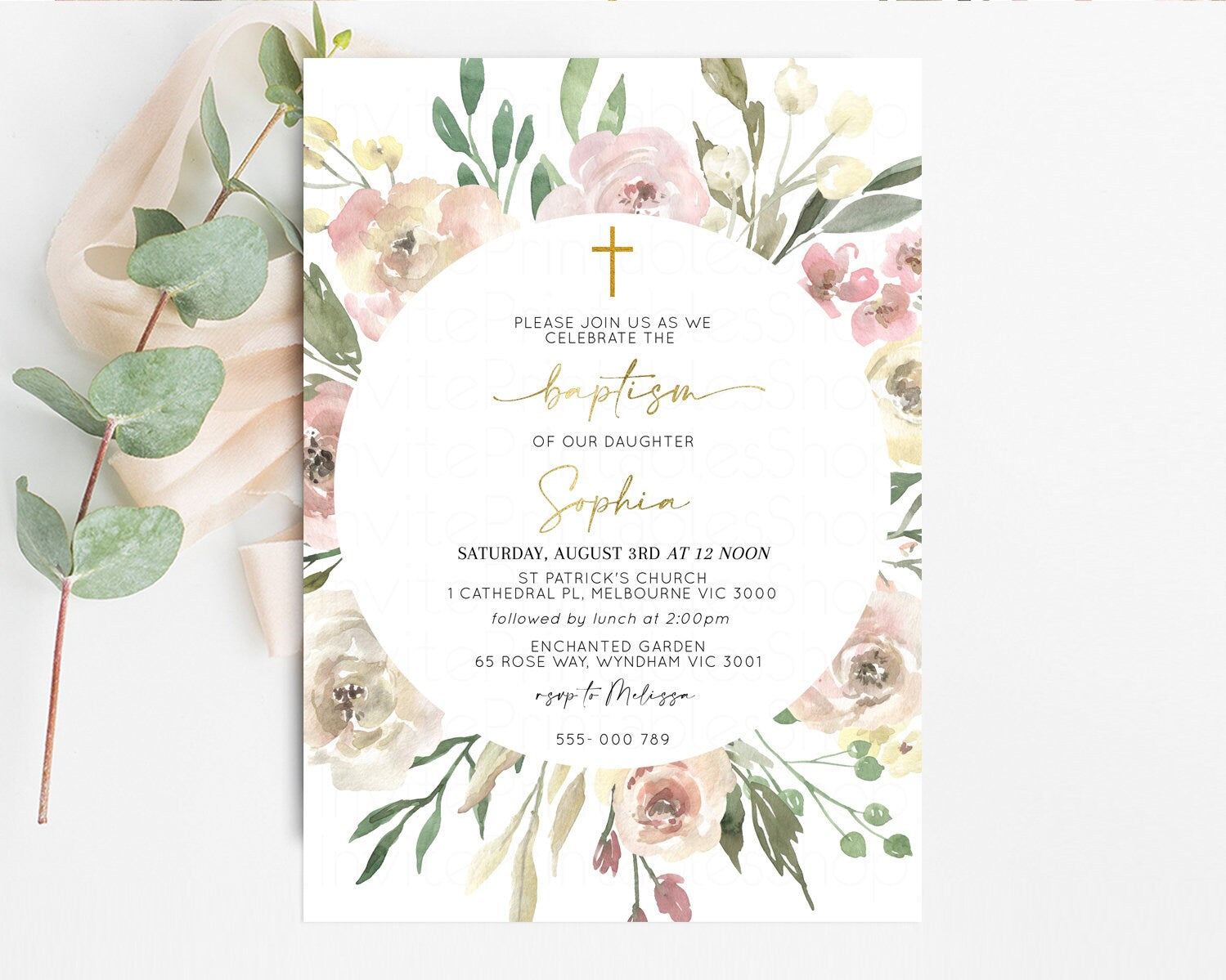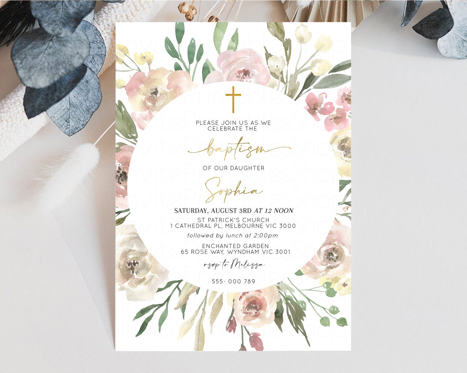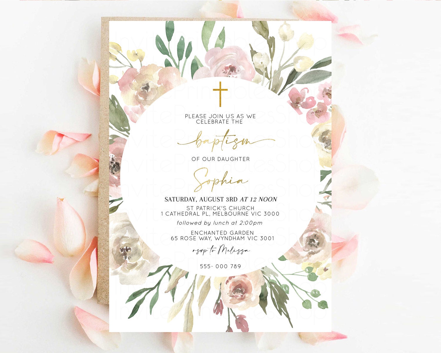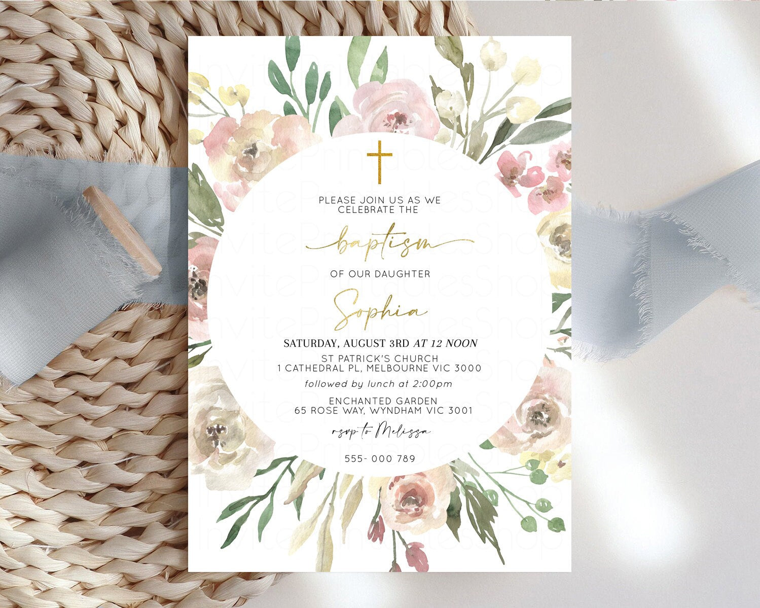 Secret Garden Baptism Invitation Floral Garden Christening Invite Enchanted Forest Invite Whimsical Floral Invite Botanical Pastel Pink w185