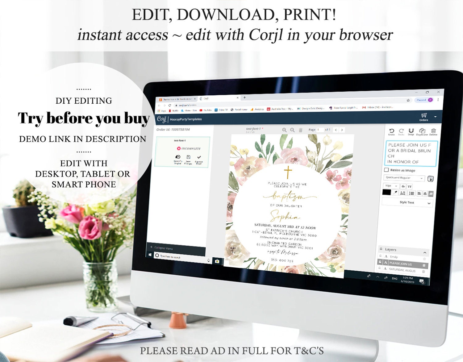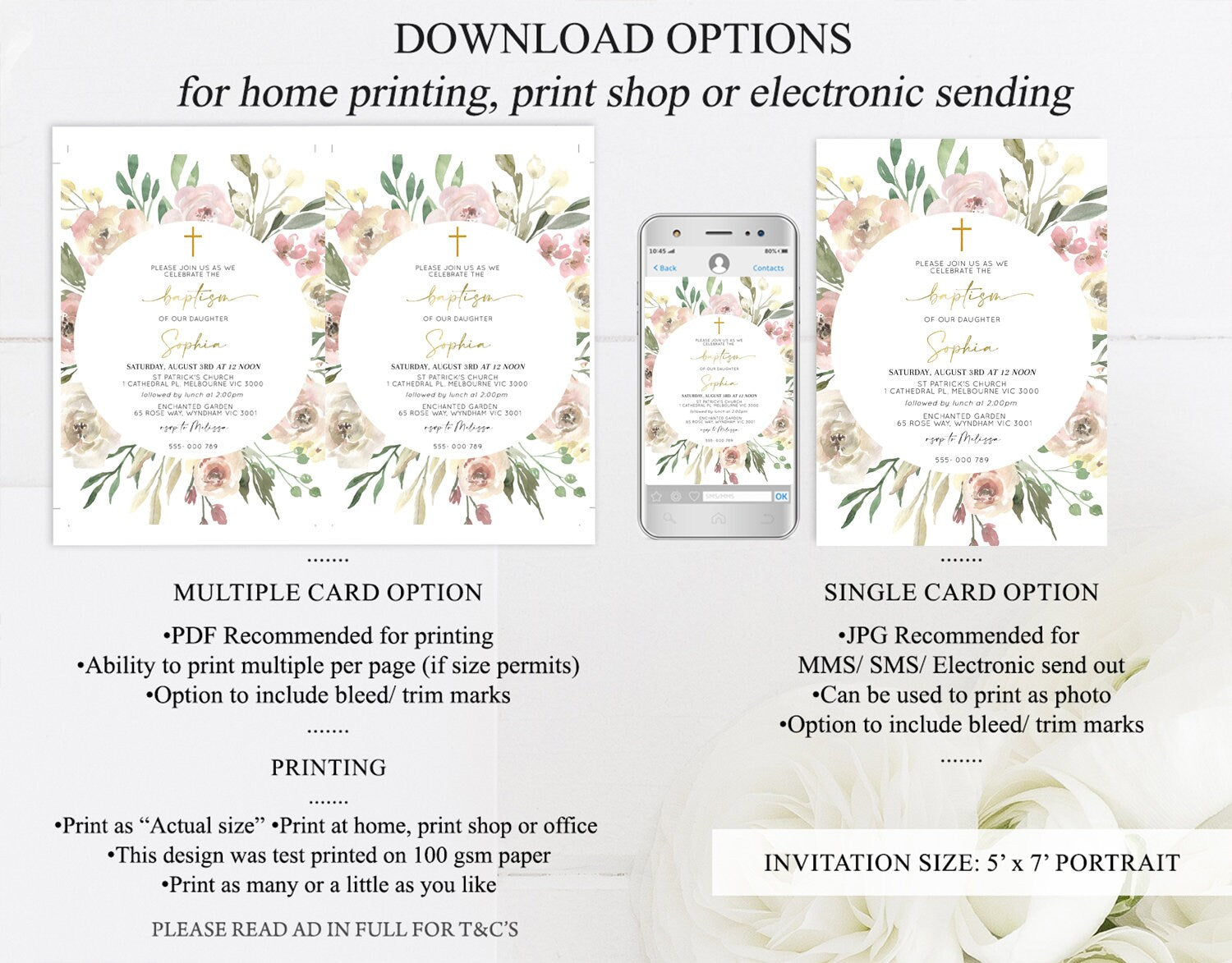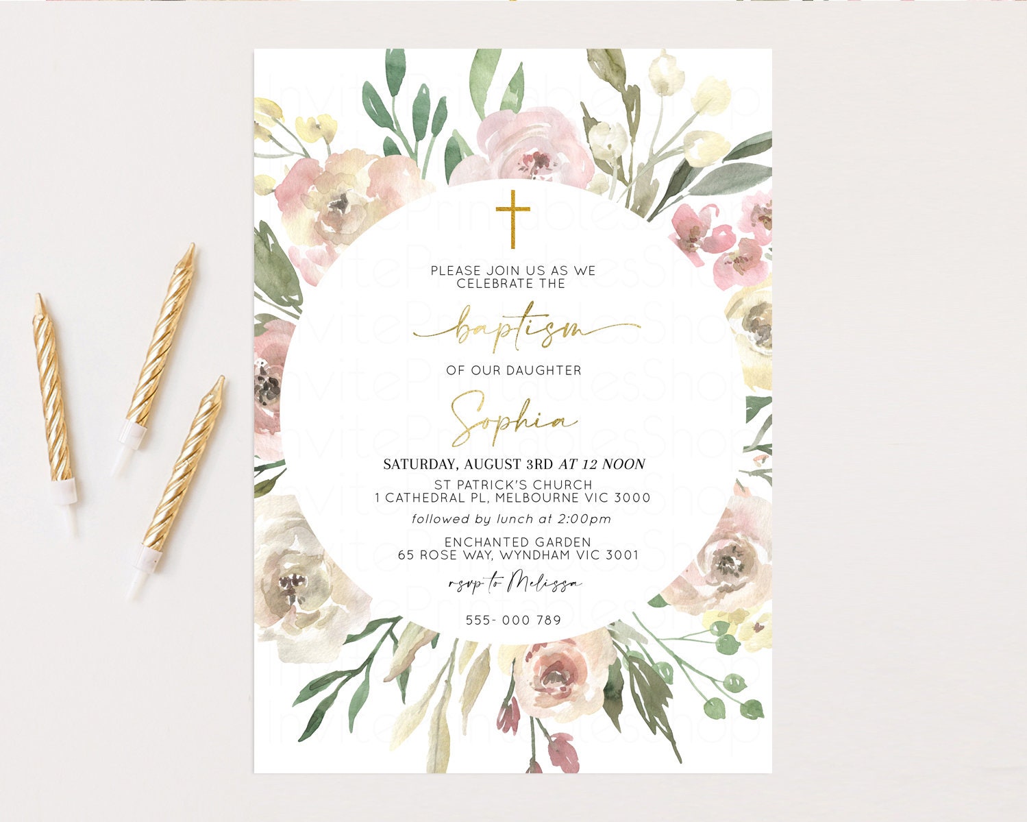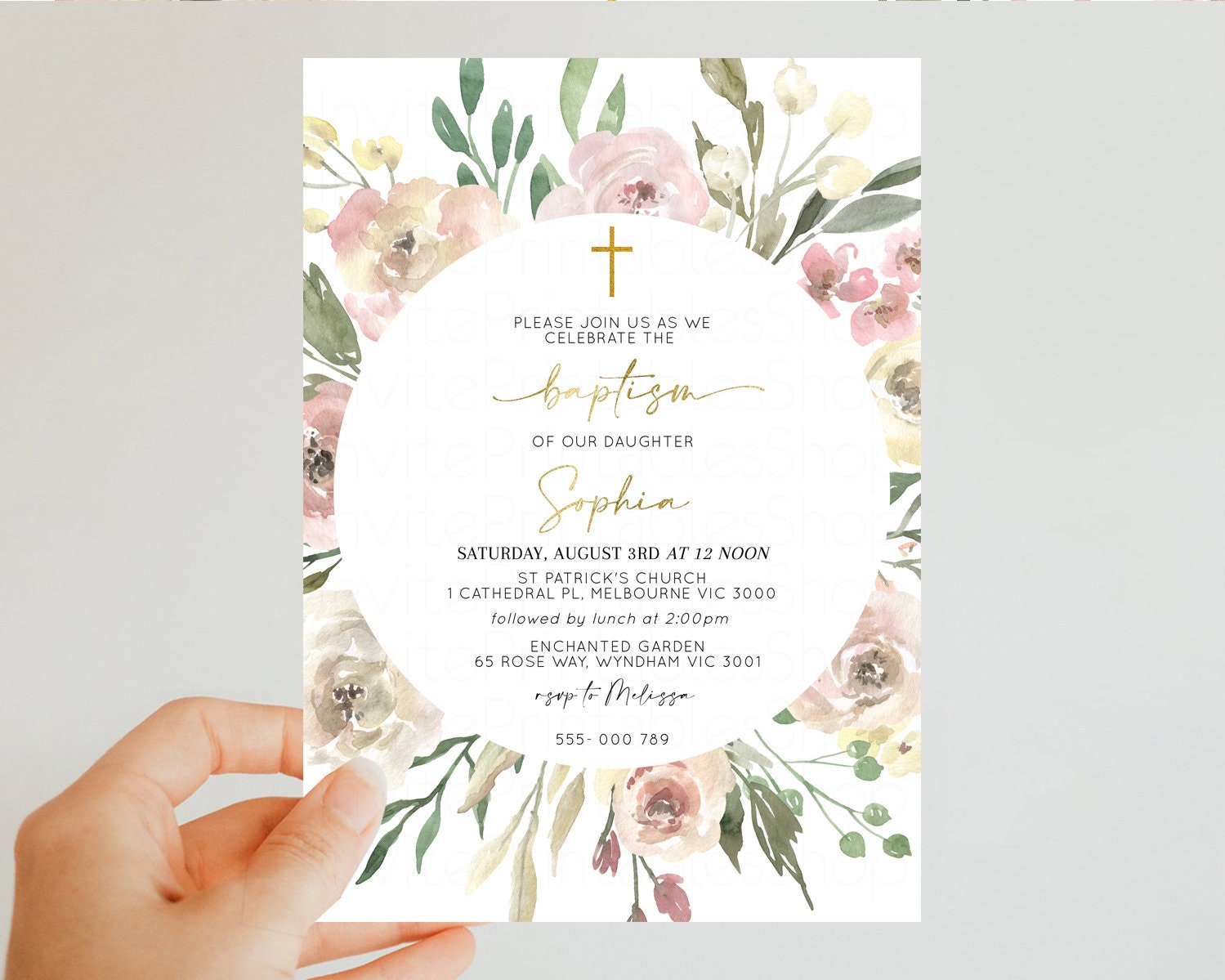 Secret Garden Baptism Invitation Floral Garden Christening Invite Enchanted Forest Invite Whimsical Floral Invite Botanical Pastel Pink w185