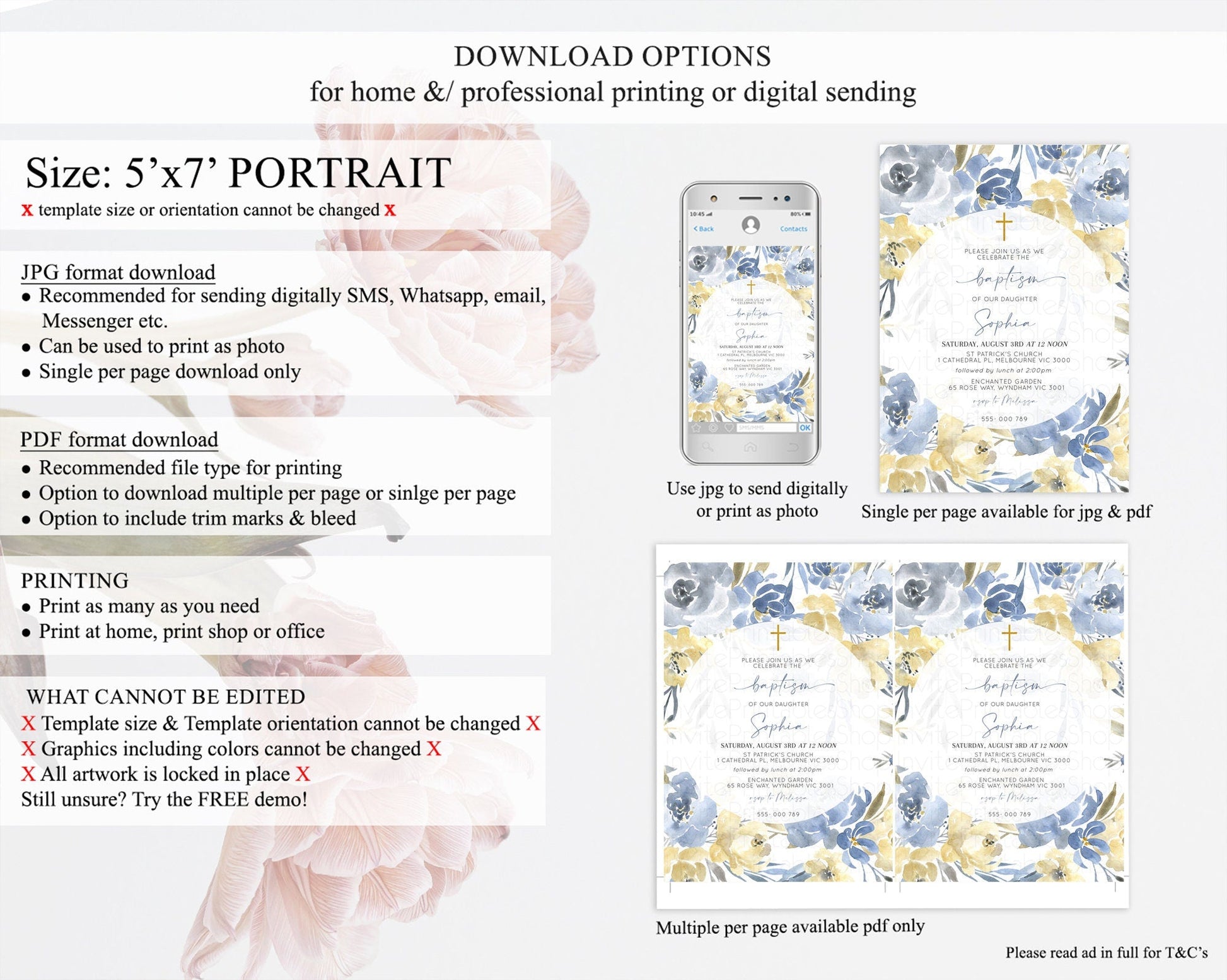 Secret Garden Baptism Invitation Wildflower Baptism Birthday Invite Pastel Flowers Christening Invite Enchanted Garden Boho Floral D10189