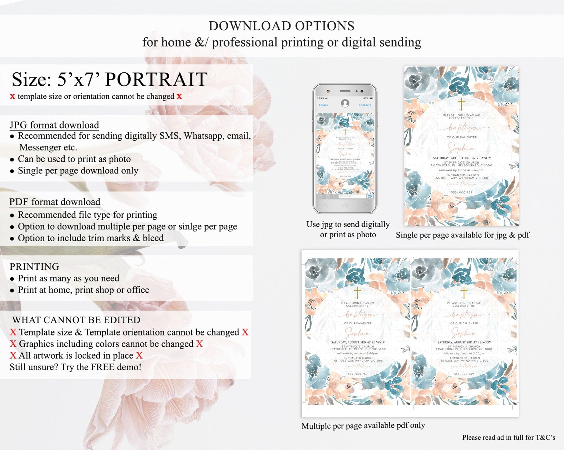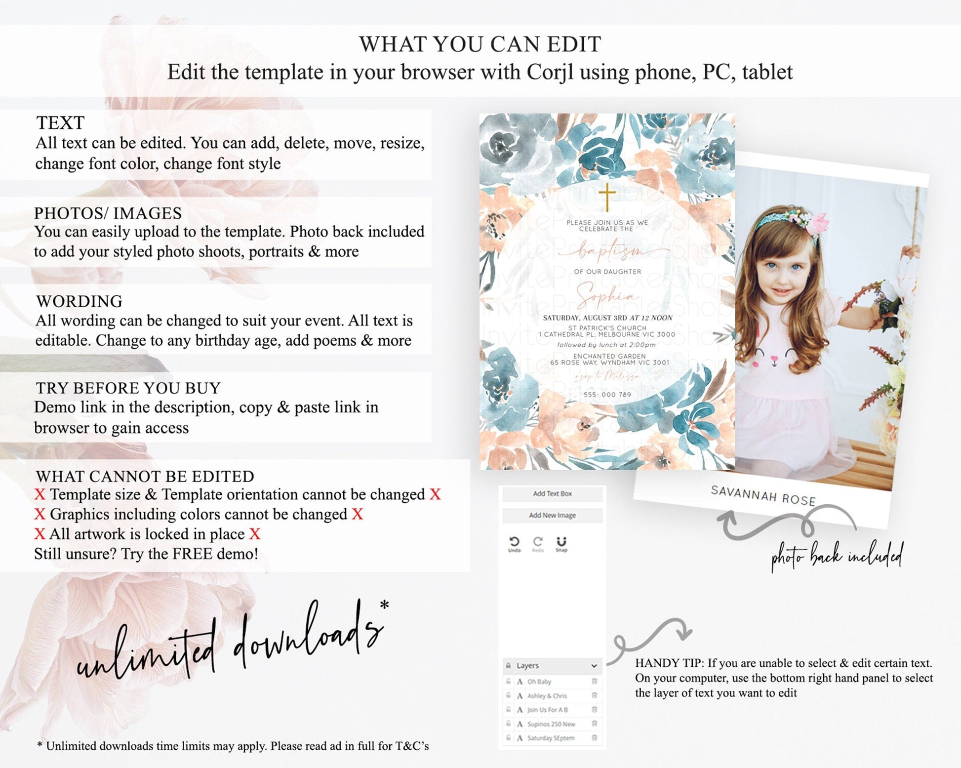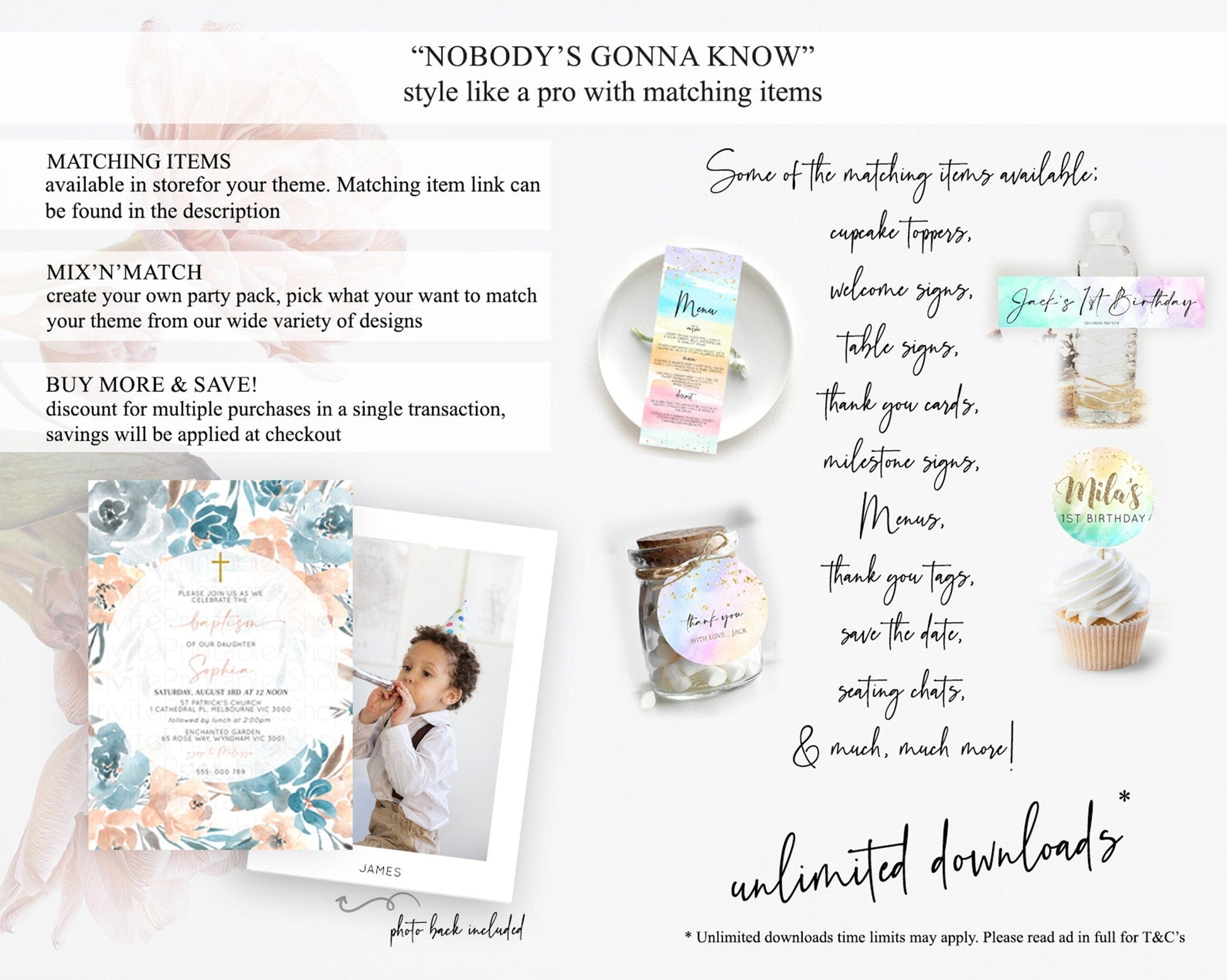 Secret Garden Baptism Invitation Wildflower Baptism Birthday Invite Pastel Flowers Christening Invite Enchanted Garden Boho Floral D10190