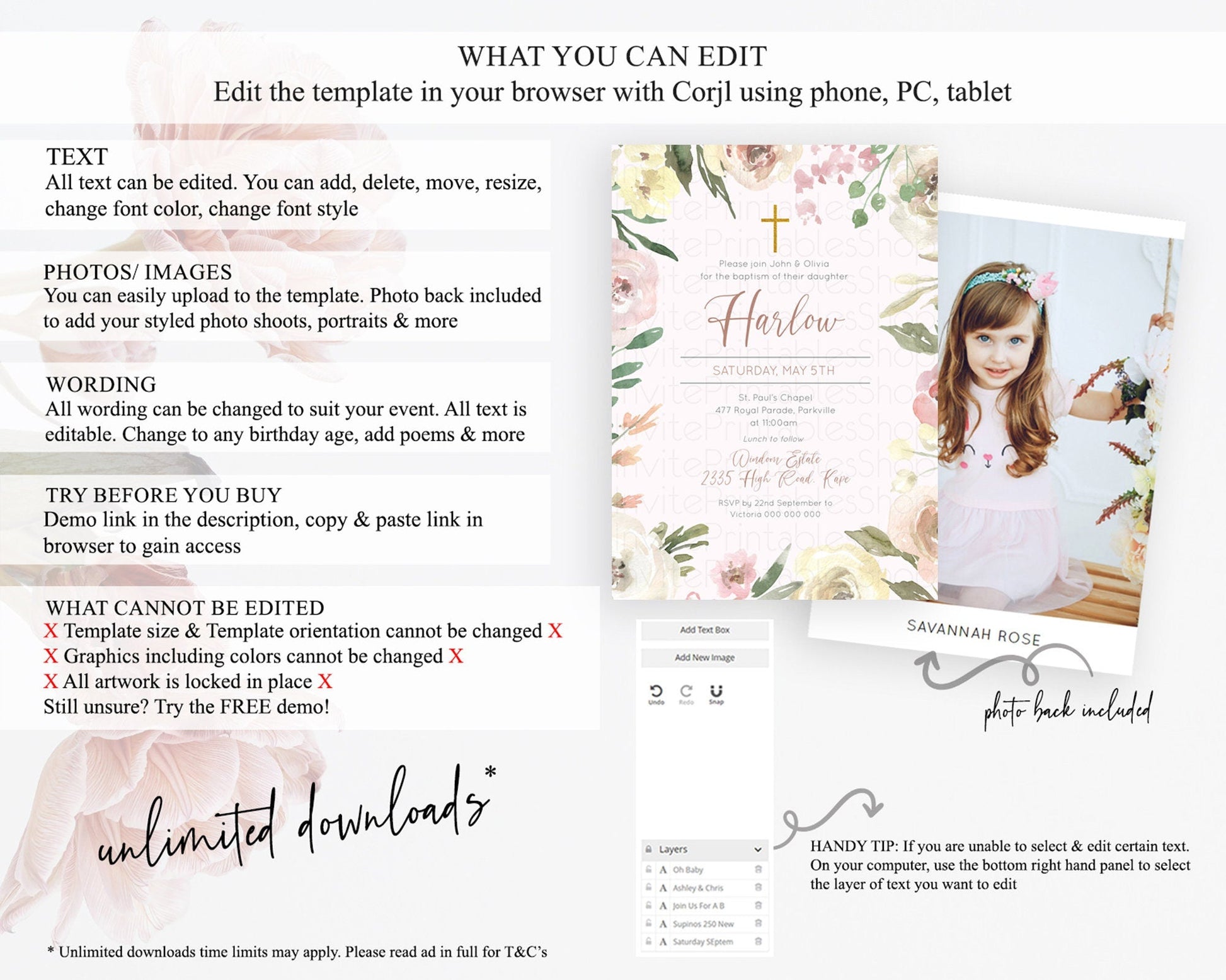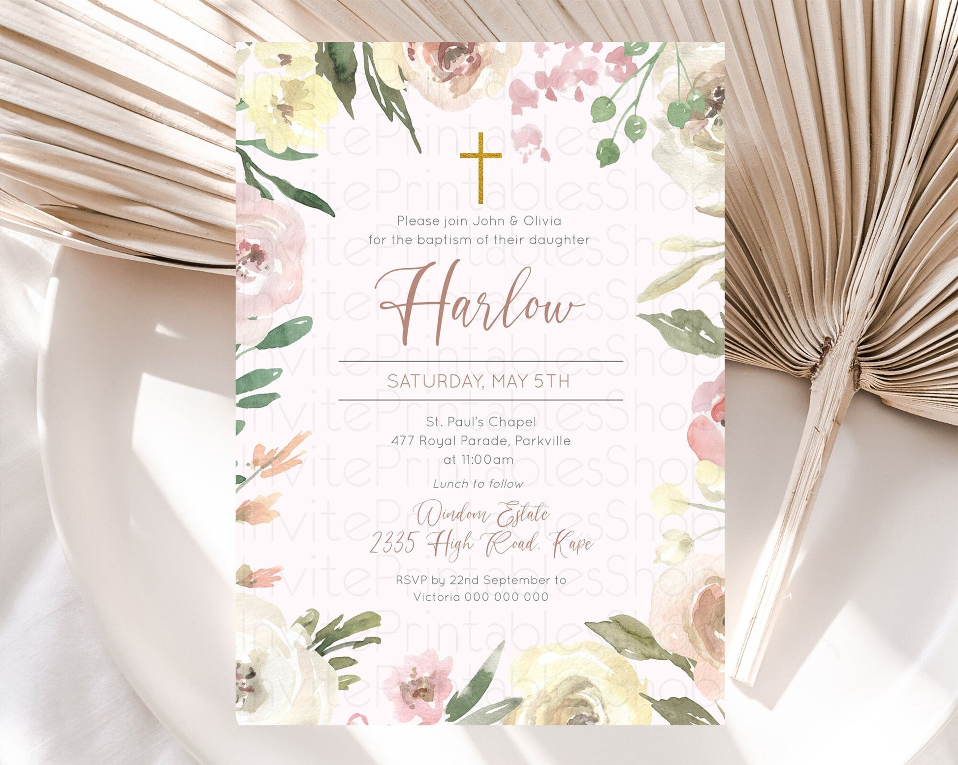 Secret Garden Baptism Invitation Wildflower Baptism Birthday Invite Pastel Flowers Christening Invite Enchanted Garden Boho Floral D10192