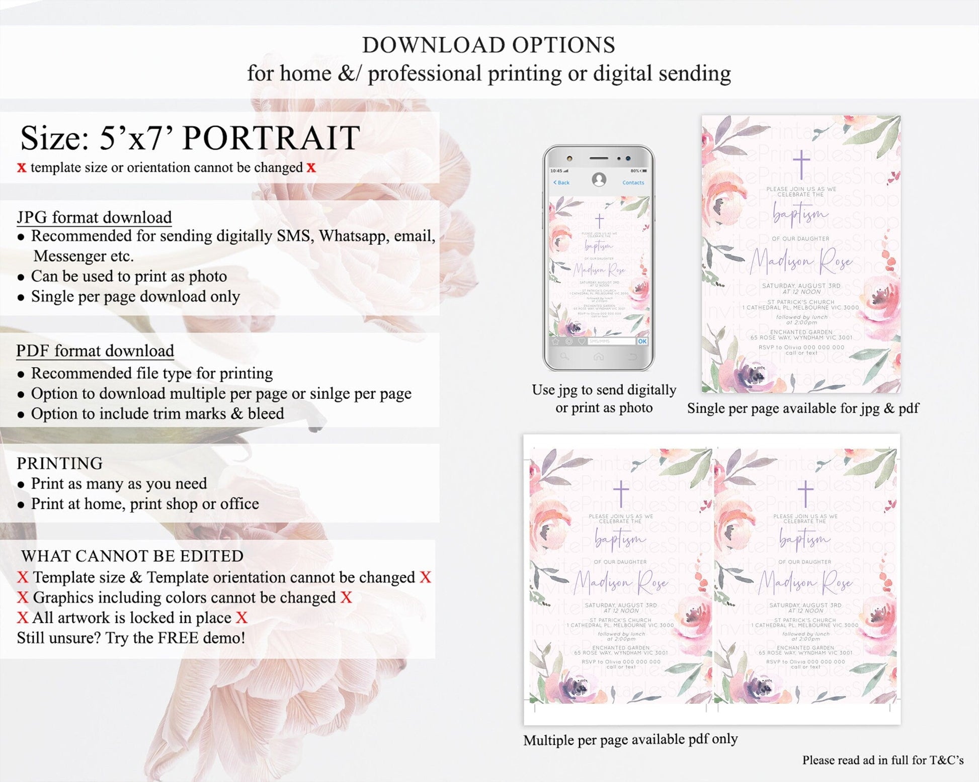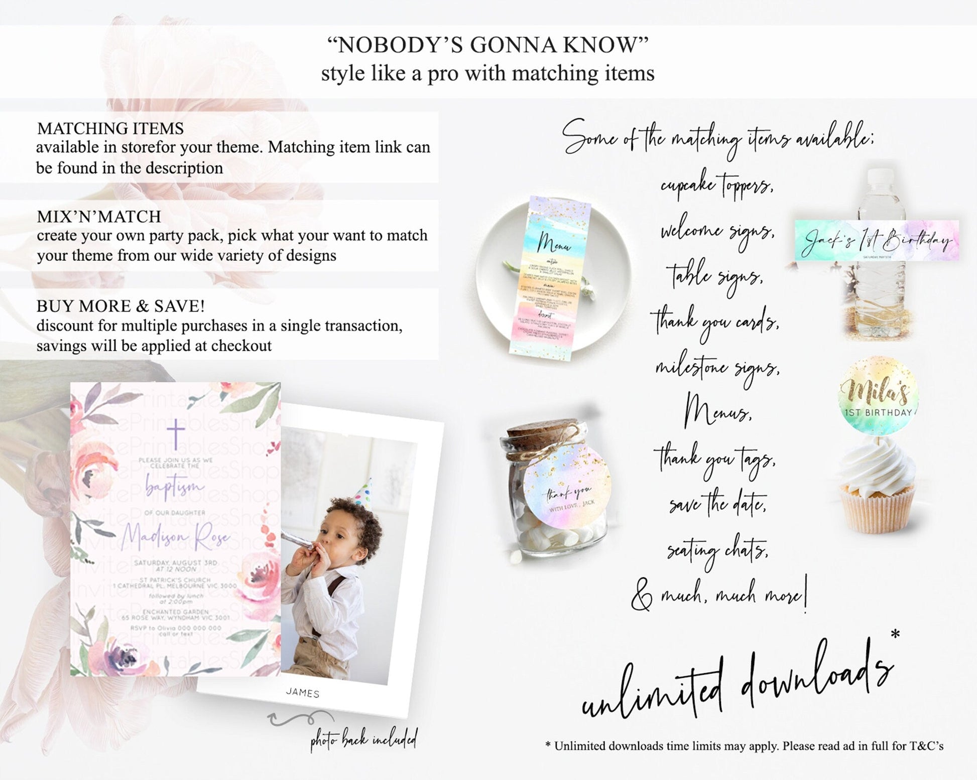 Secret Garden Baptism Invitation Wildflower Baptism Birthday Invite Pastel Flowers Christening Invite Enchanted Garden Boho Floral D10198