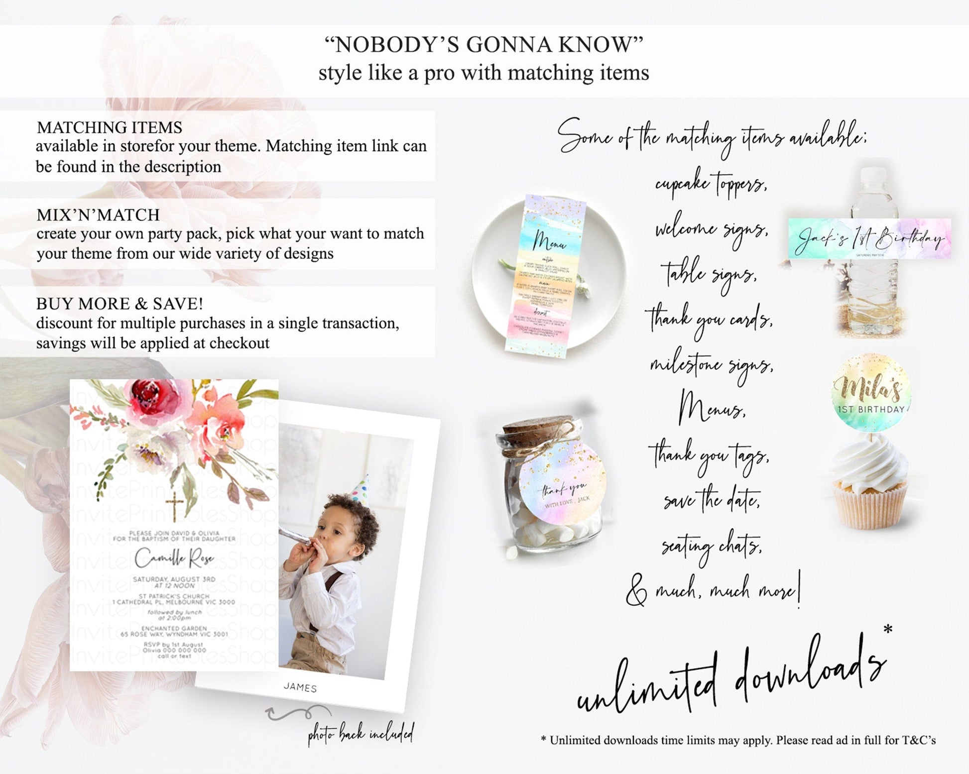 Secret Garden Baptism Invitation Wildflower Baptism Birthday Invite Pastel Flowers Christening Invite Enchanted Garden Boho Floral D10243