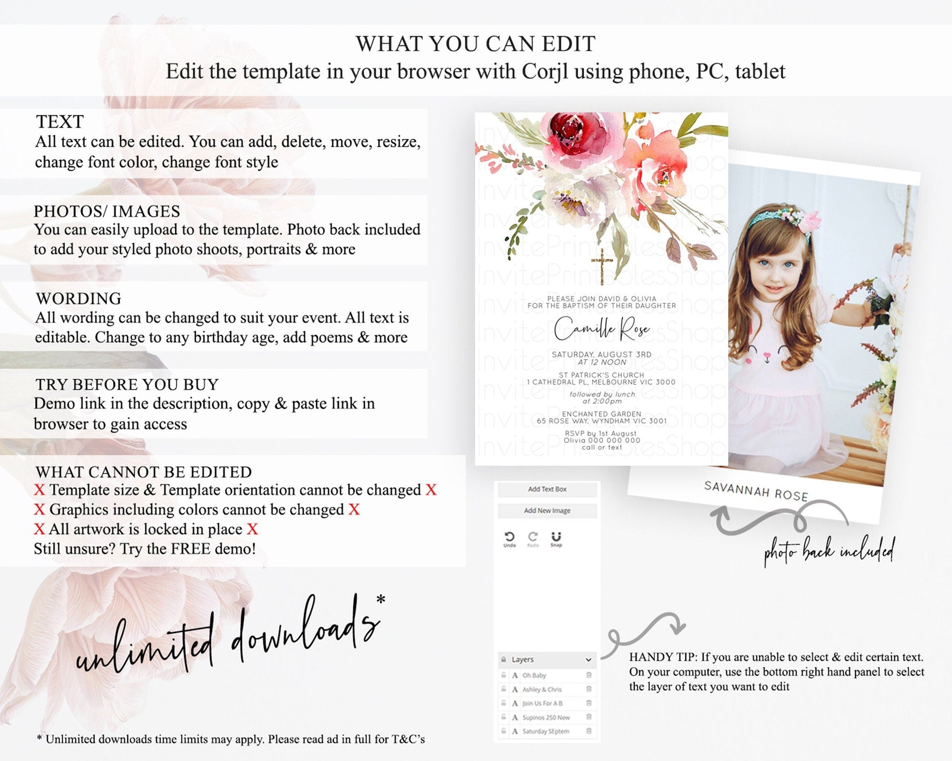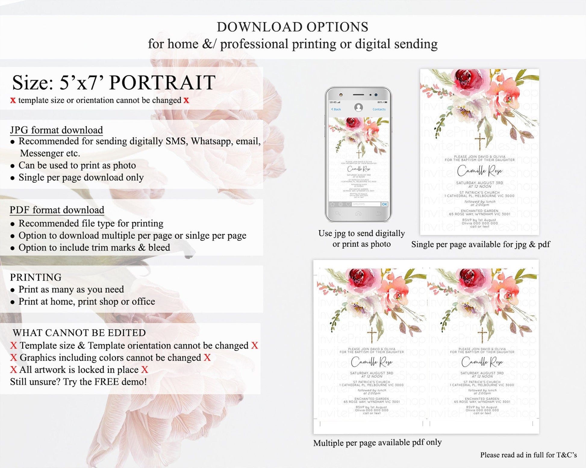 • Template size & orientation cannot be changed. Please use the demo link to confirm this product suits your needs.