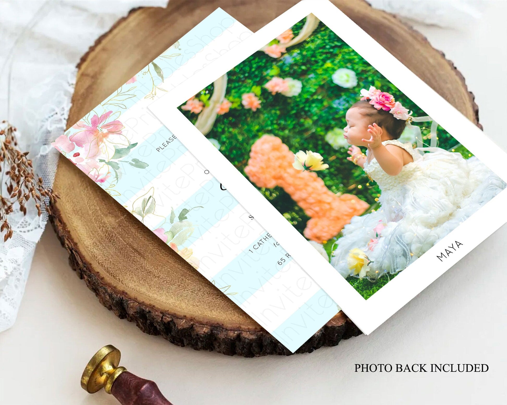 Secret Garden Baptism Invitation Wildflower Baptism Birthday Invite Pastel Flowers Christening Invite Enchanted Garden Boho Floral D10303