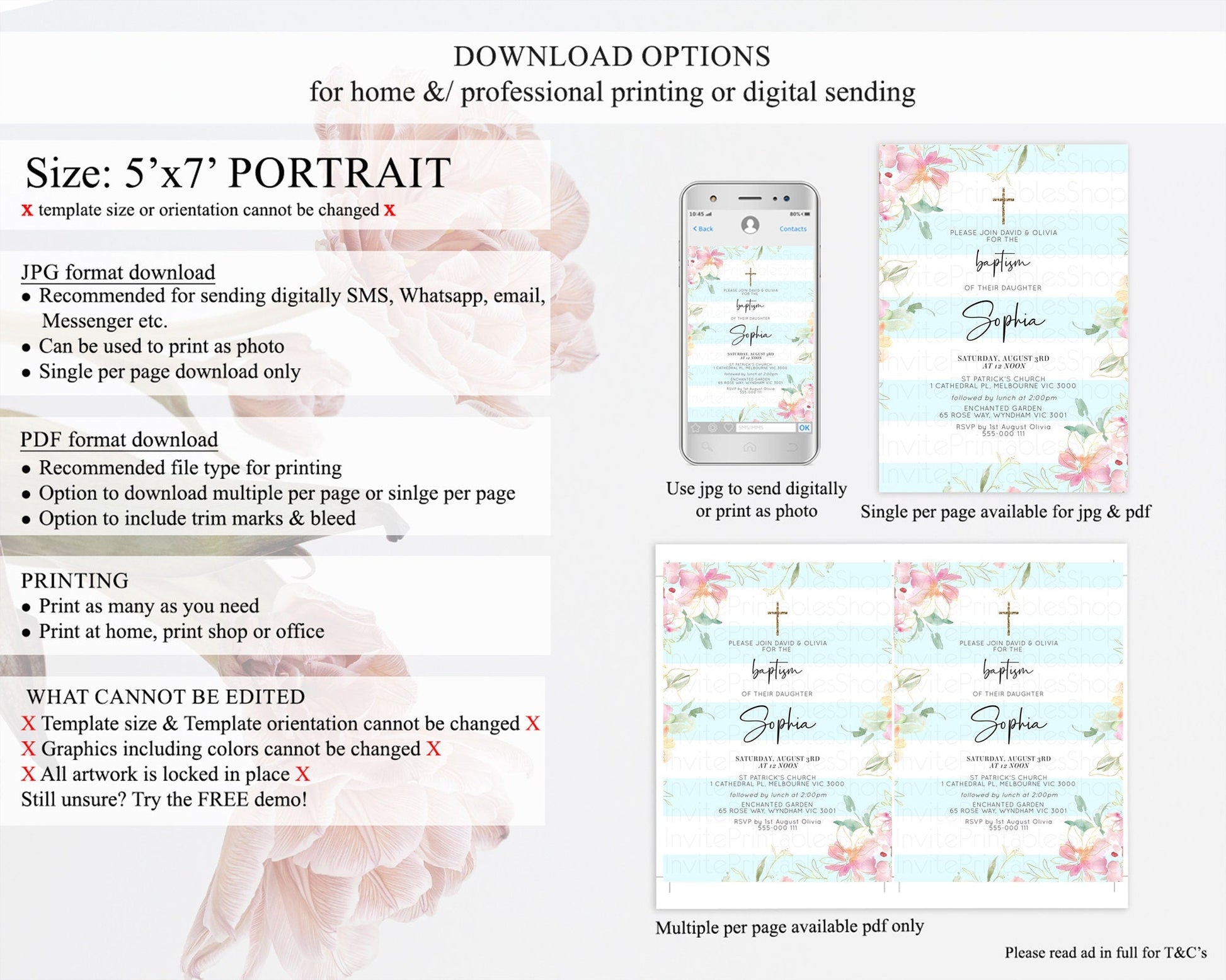 • Template size & orientation cannot be changed. Please use the demo link to confirm this product suits your needs.