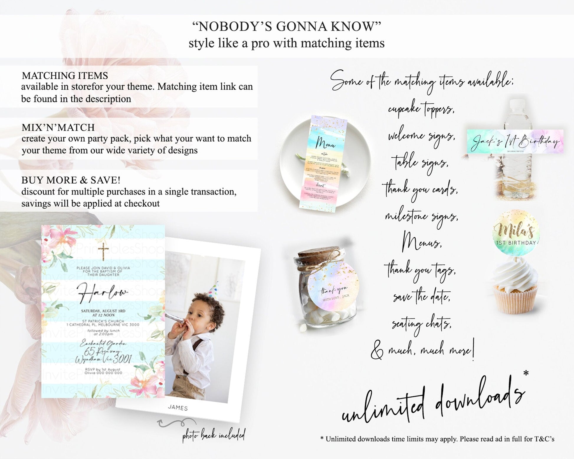 Secret Garden Baptism Invitation Wildflower Baptism Birthday Invite Pastel Flowers Christening Invite Enchanted Garden Boho Floral D10304