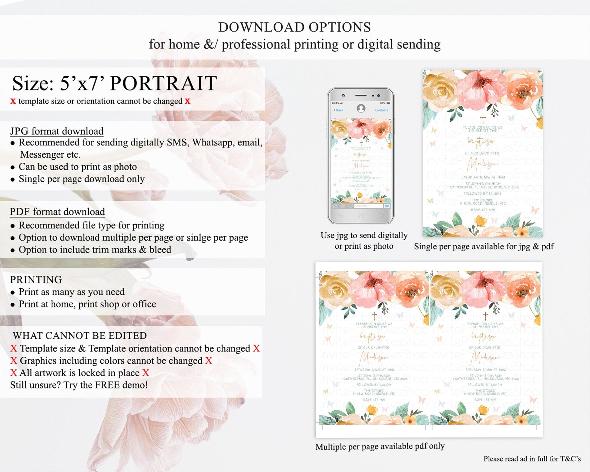 Secret Garden Baptism Invitation Wildflower Baptism Birthday Invite Pastel Flowers Christening Invite Enchanted Garden Boho Floral D10347