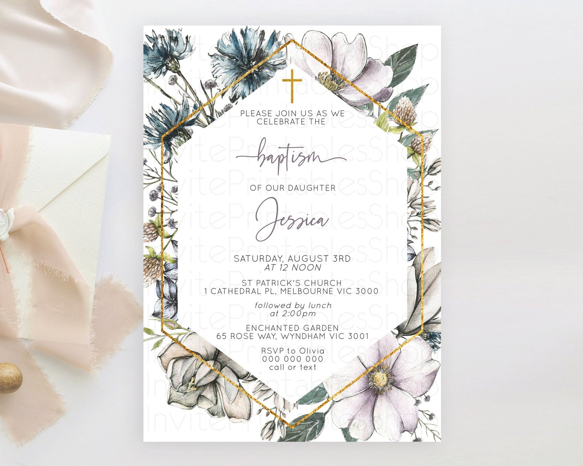 Secret Garden Baptism Invitation Wildflower Baptism Birthday Invite Pastel Flowers Christening Invite Enchanted Garden Boho Floral D10501