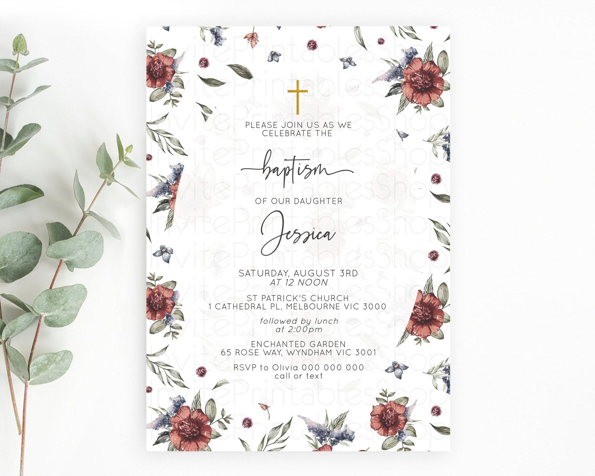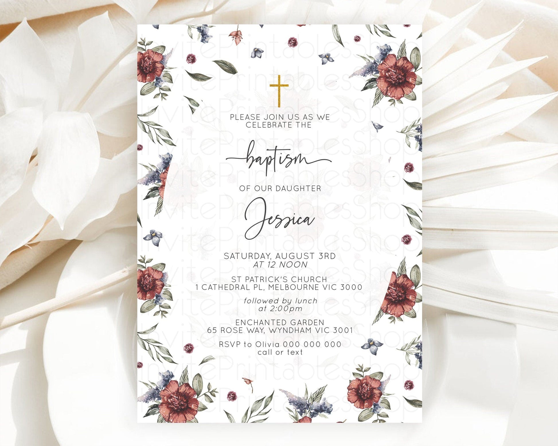 Secret Garden Baptism Invitation Wildflower Baptism Birthday Invite Pastel Flowers Christening Invite Enchanted Garden Boho Floral D10503