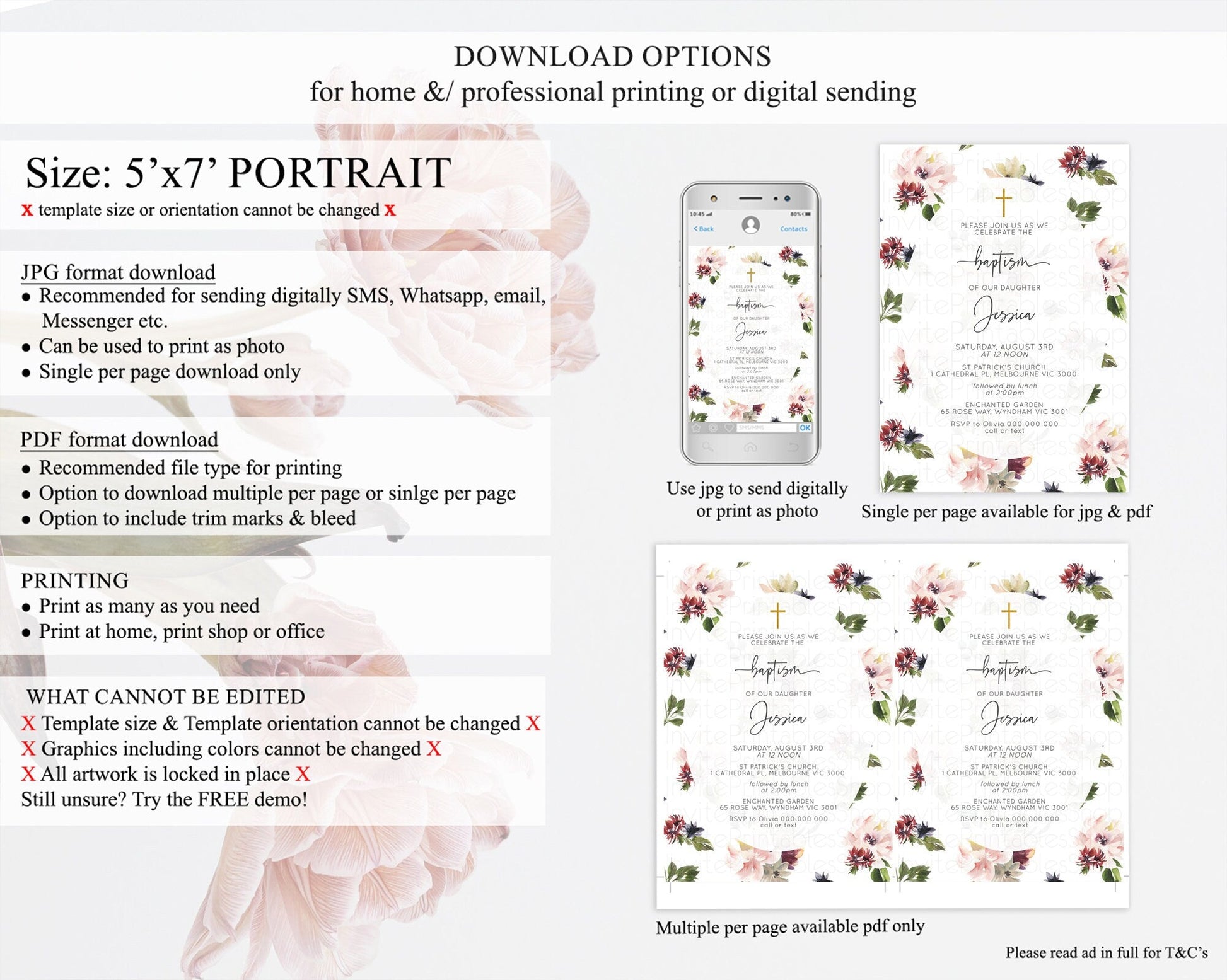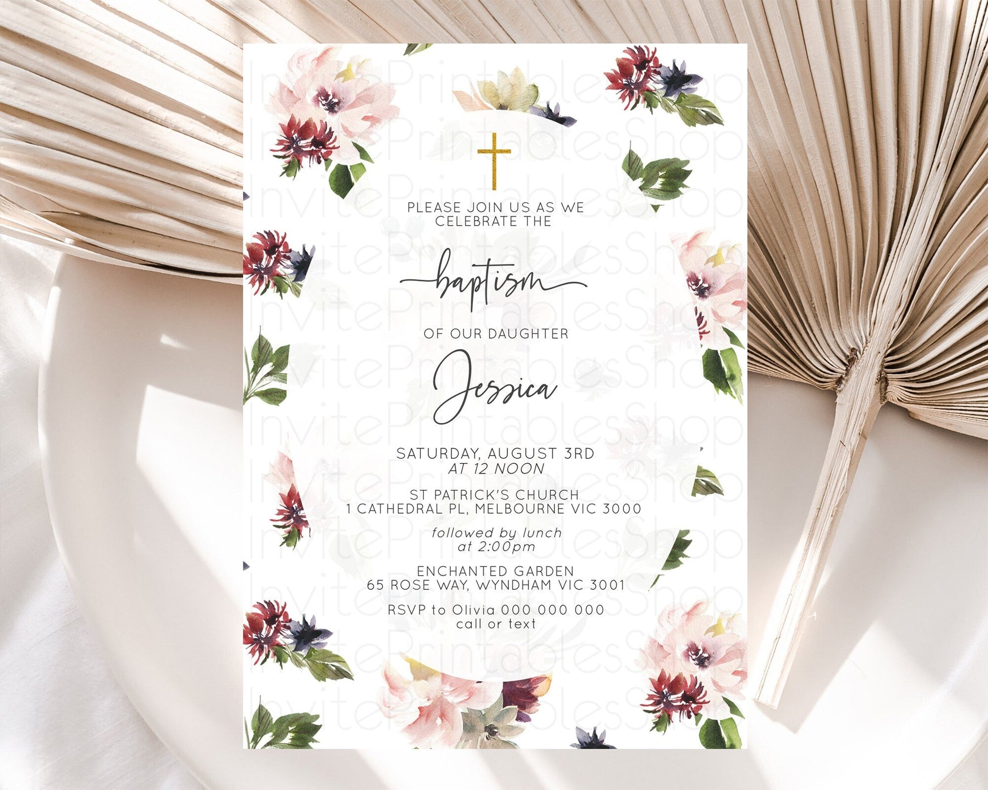 Secret Garden Baptism Invitation Wildflower Baptism Birthday Invite Pastel Flowers Christening Invite Enchanted Garden Boho Floral D10538