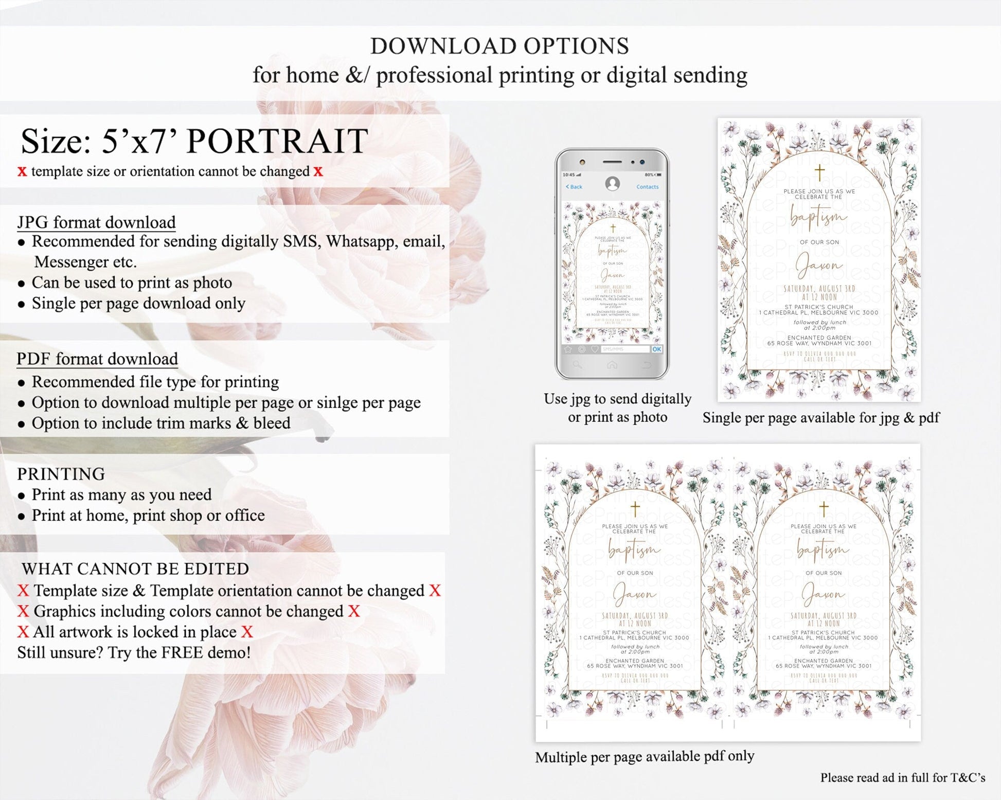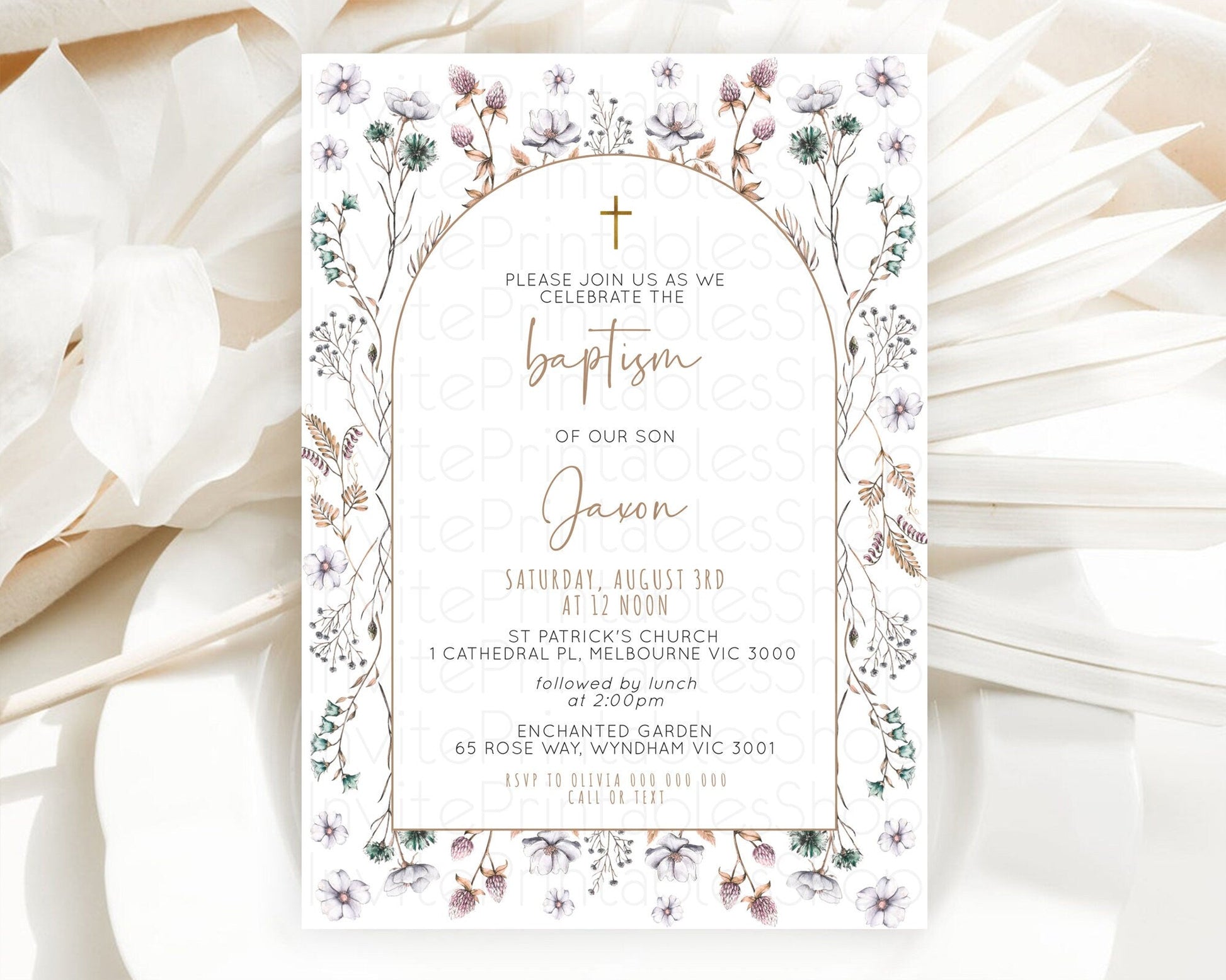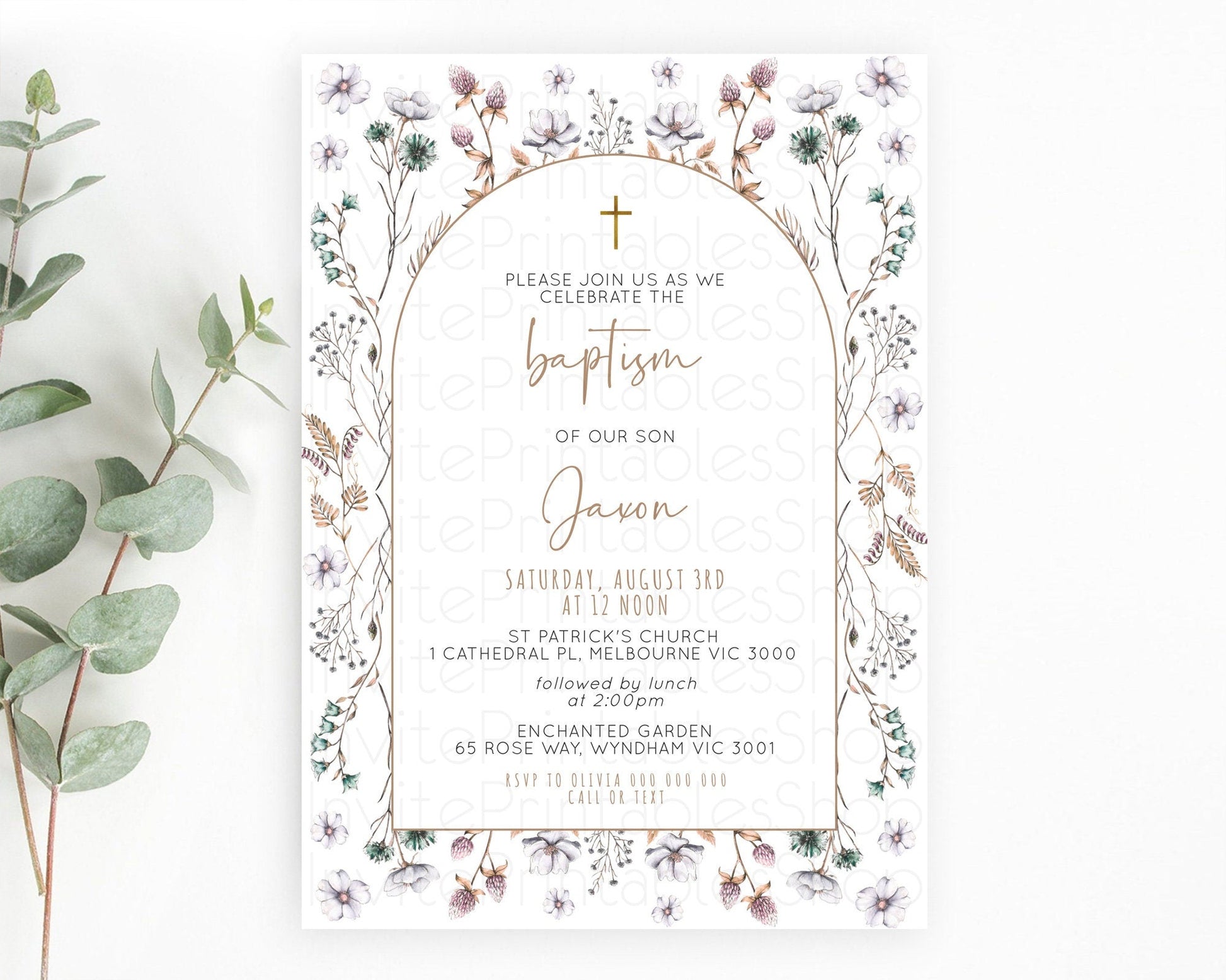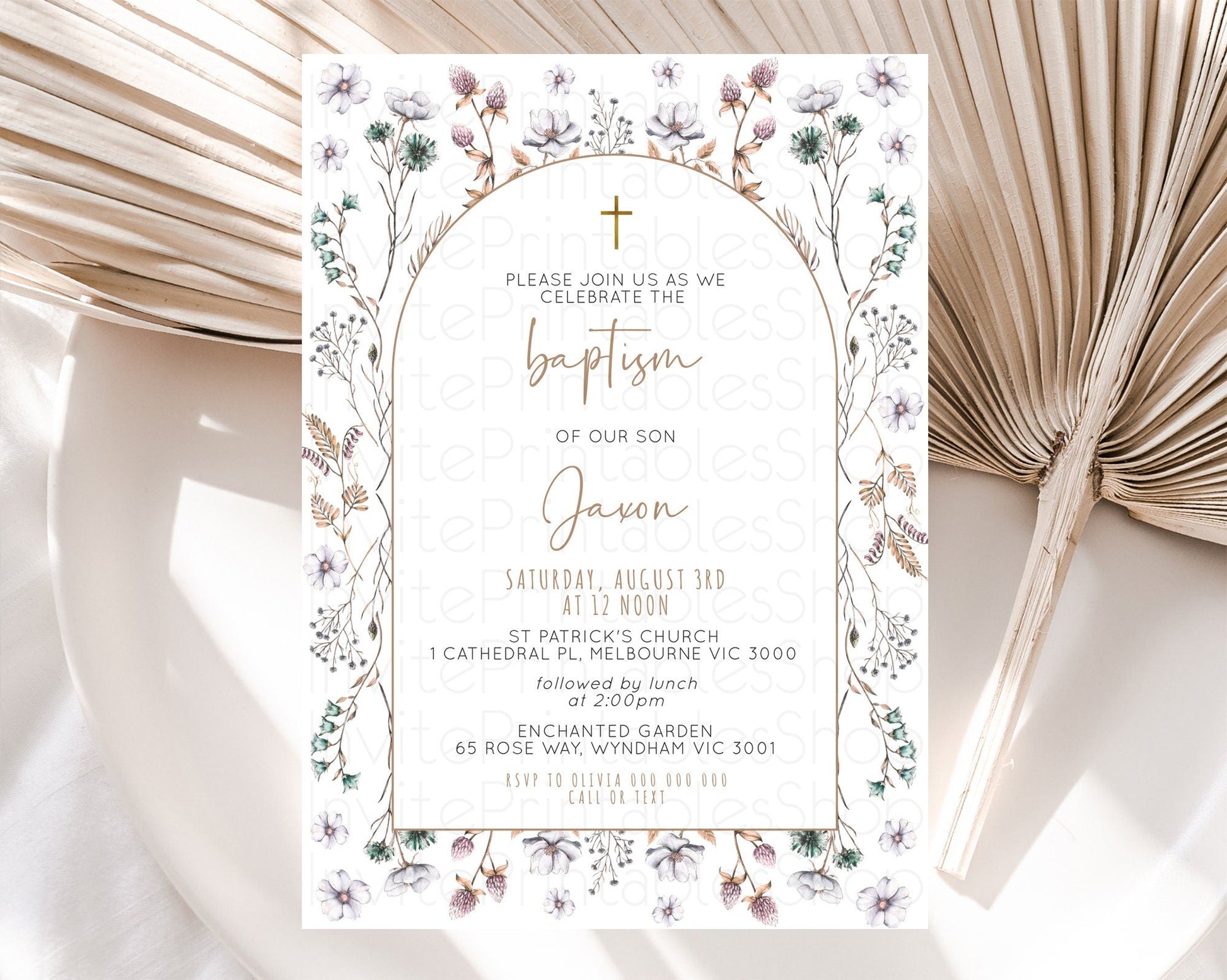 Secret Garden Baptism Invitation Wildflower Baptism Birthday Invite Pastel Flowers Christening Invite Enchanted Garden Boho Floral D10604
