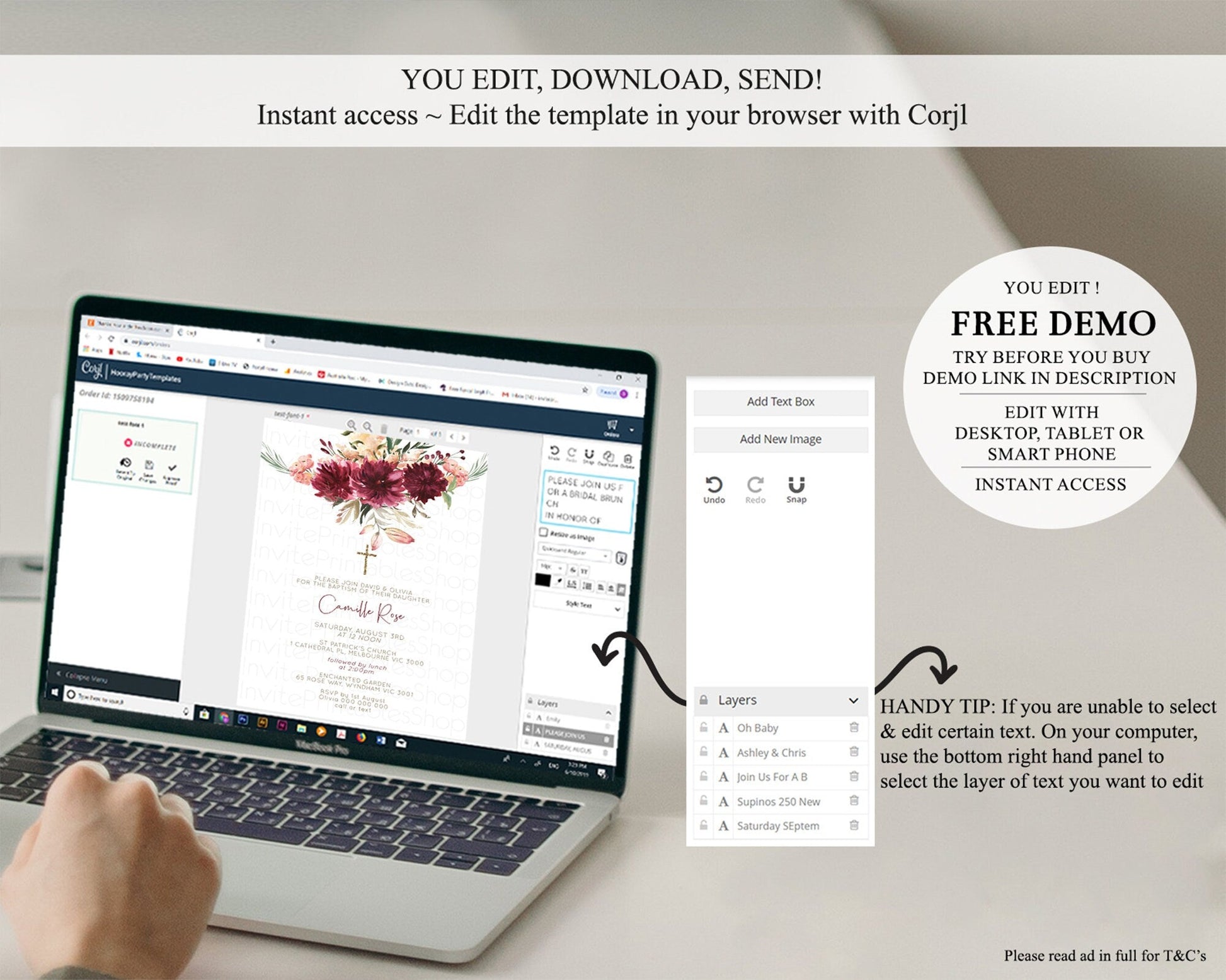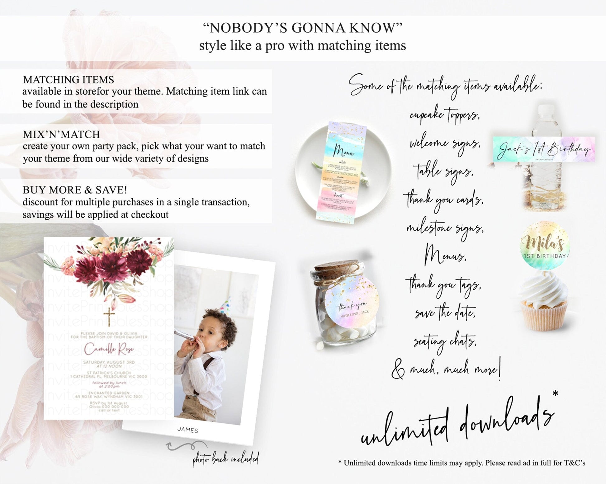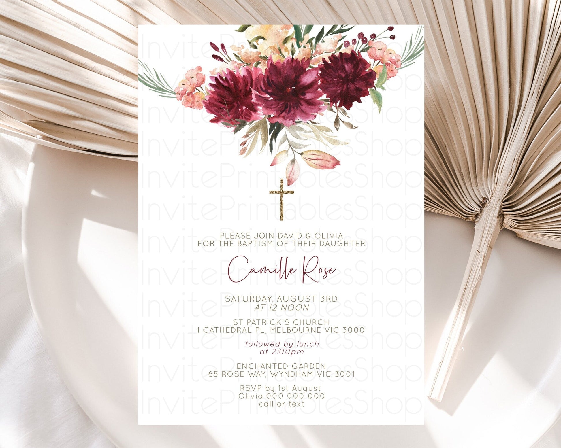 Secret Garden Baptism Invitation Wildflower Baptism Birthday Invite Pastel Flowers Christening Invite Enchanted Garden Boho Floral D10685