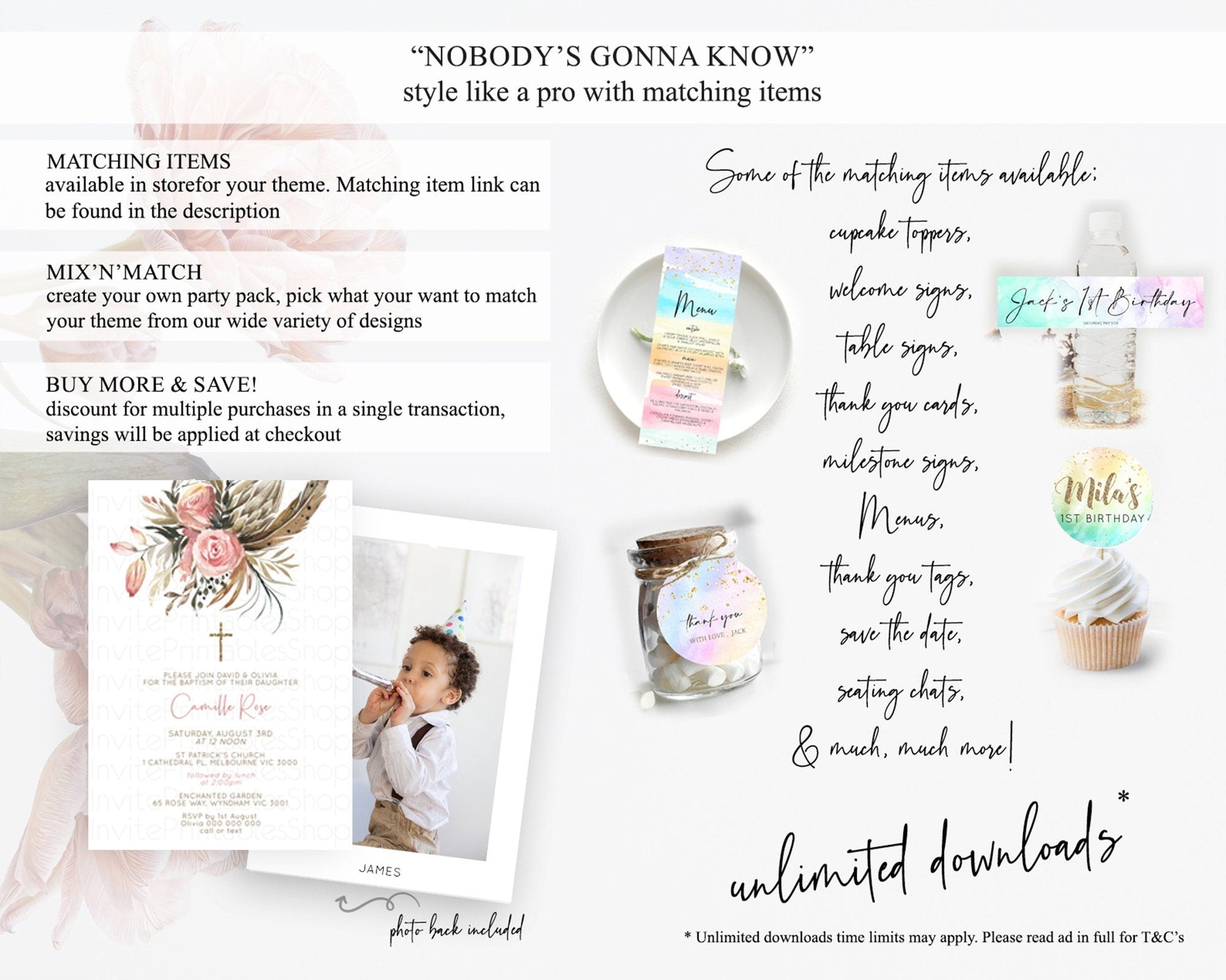 Secret Garden Baptism Invitation Wildflower Baptism Birthday Invite Pastel Flowers Christening Invite Enchanted Garden Boho Floral D10686