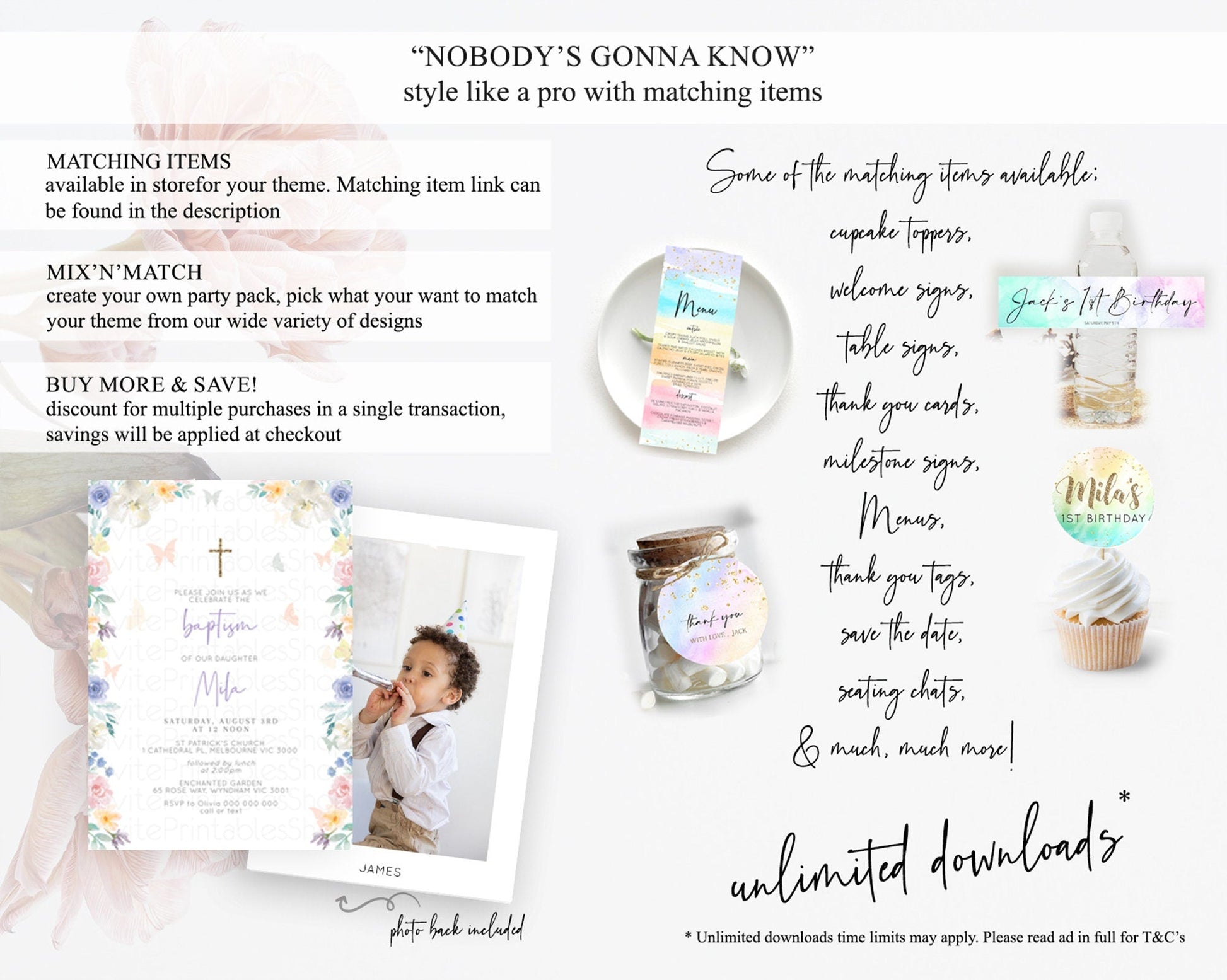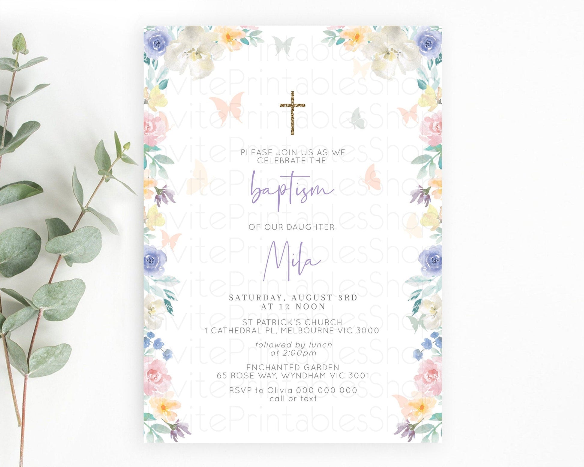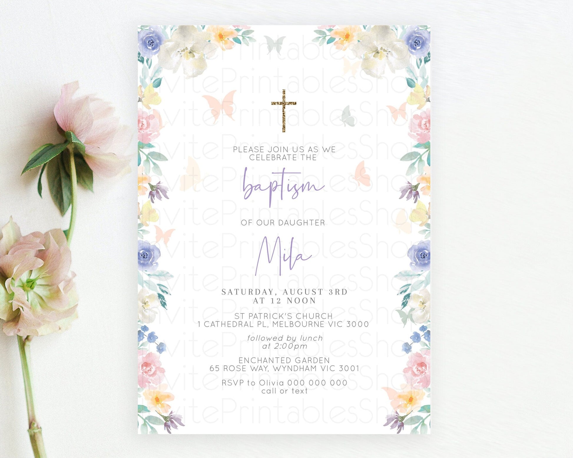 Secret Garden Baptism Invitation Wildflower Baptism Birthday Invite Pastel Flowers Christening Invite Enchanted Garden Boho Floral D10710