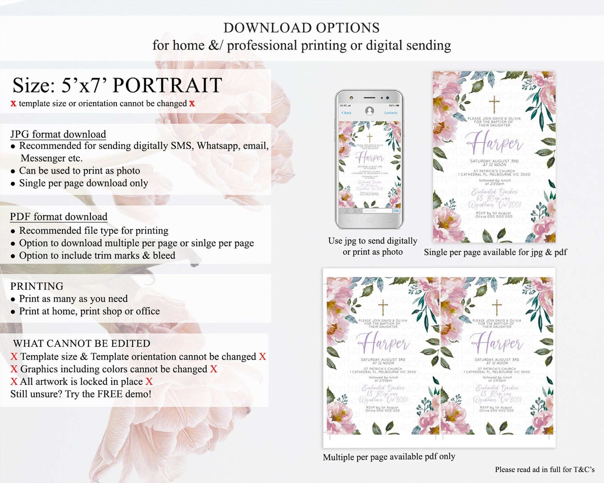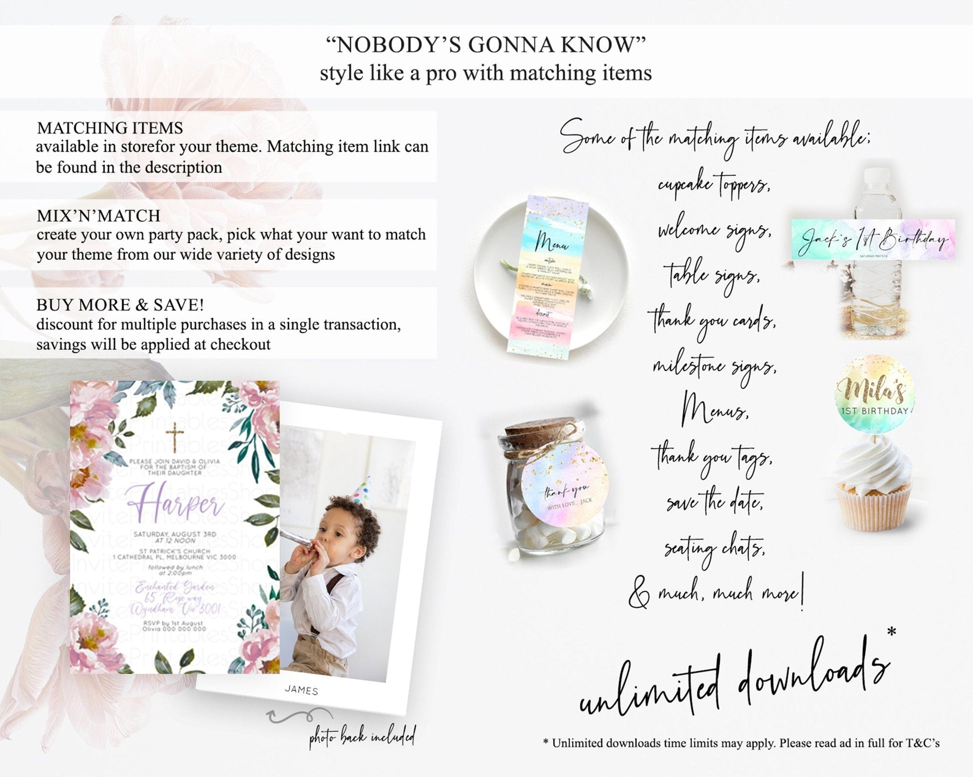 Secret Garden Baptism Invitation Wildflower Baptism Birthday Invite Pastel Flowers Christening Invite Enchanted Garden Boho Floral D10729