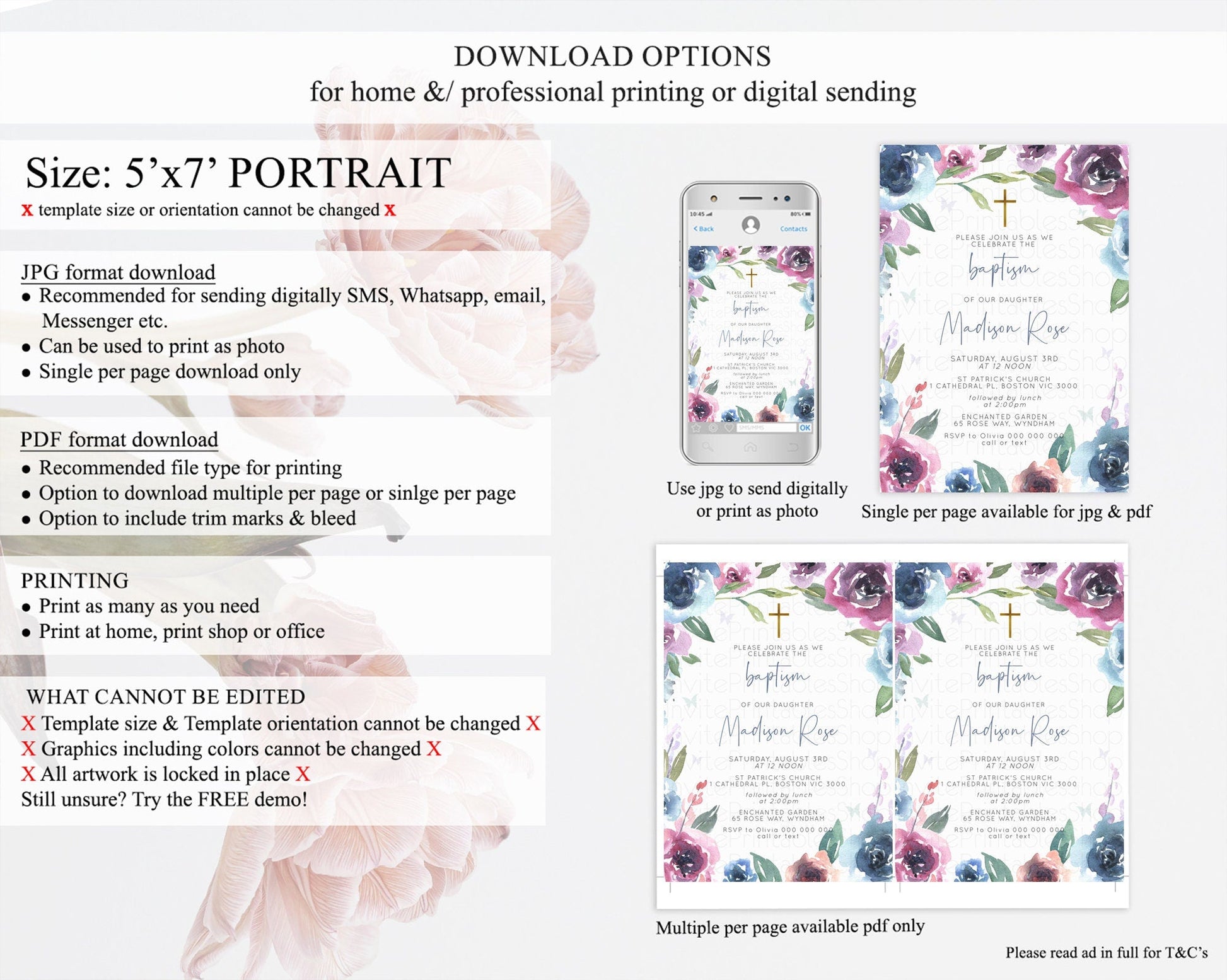 Secret Garden Baptism Invitation Wildflower Baptism Birthday Invite Pastel Flowers Christening Invite Enchanted Garden Boho Floral D10780