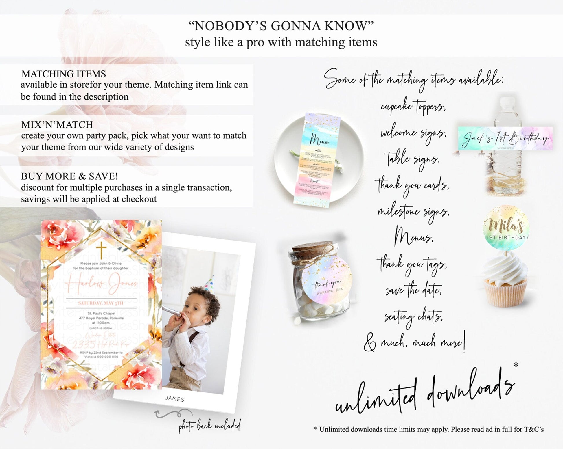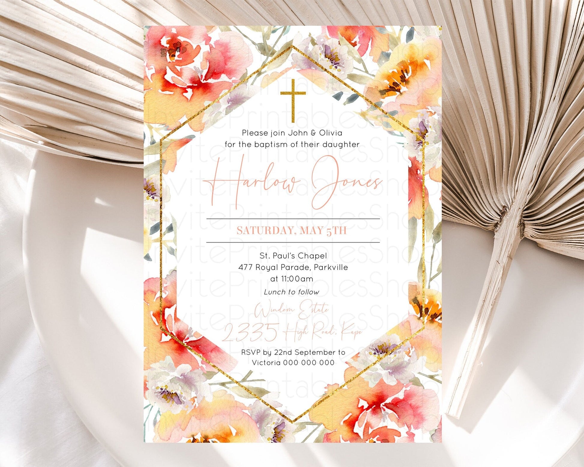 Secret Garden Baptism Invitation Wildflower Baptism Birthday Invite Pastel Flowers Christening Invite Enchanted Garden Boho Floral D10791
