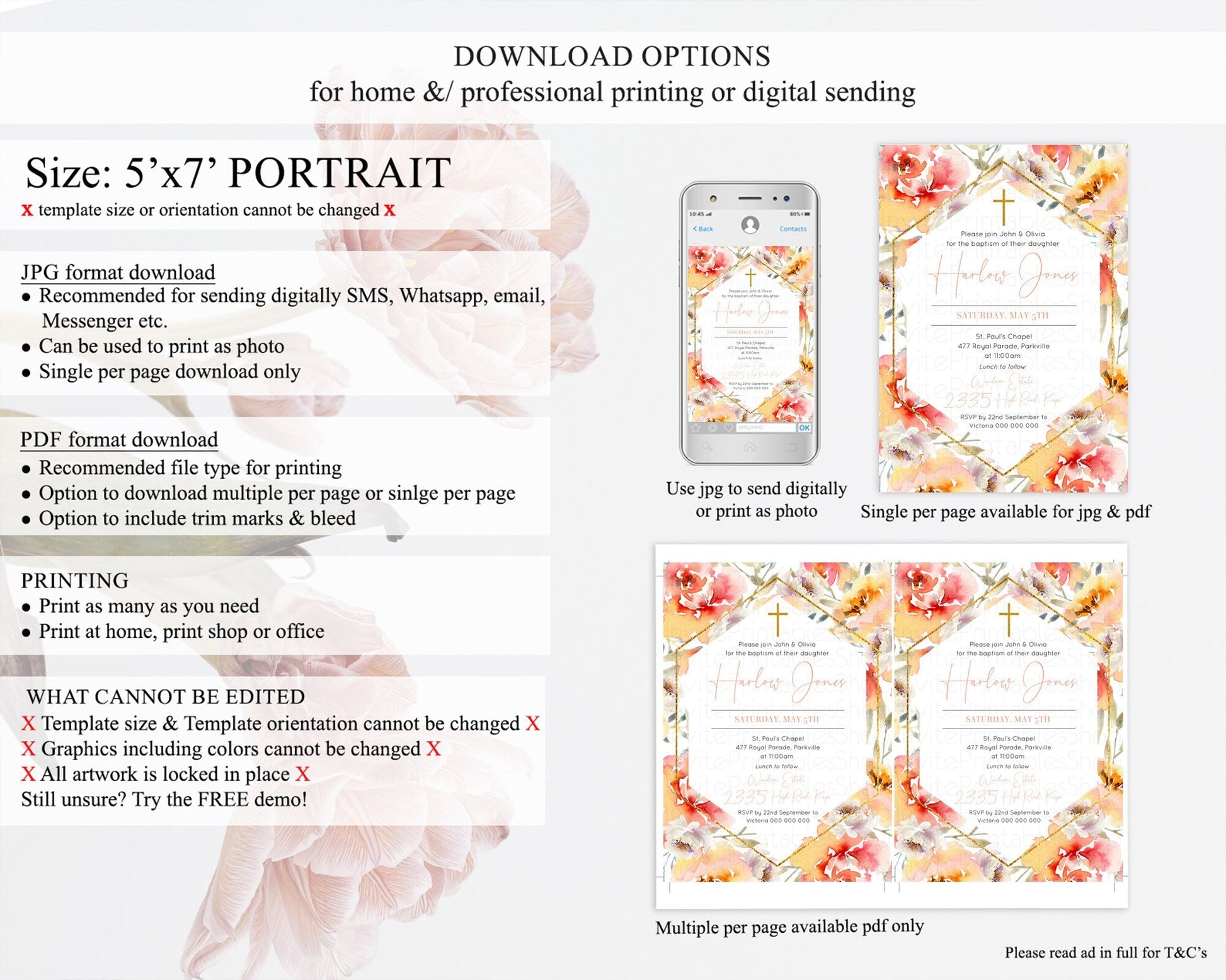• Template size & orientation cannot be changed. Please use the demo link to confirm this product suits your needs.