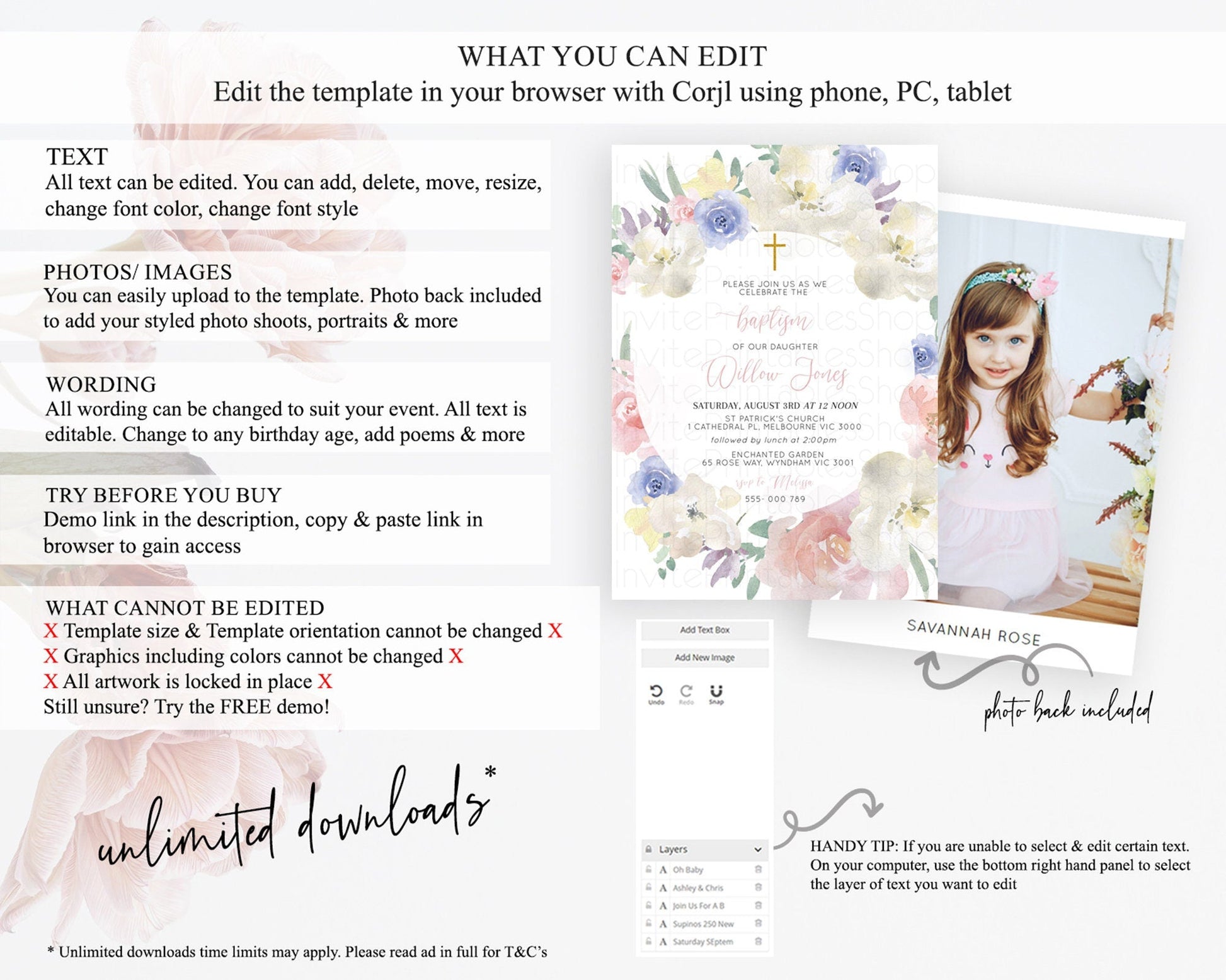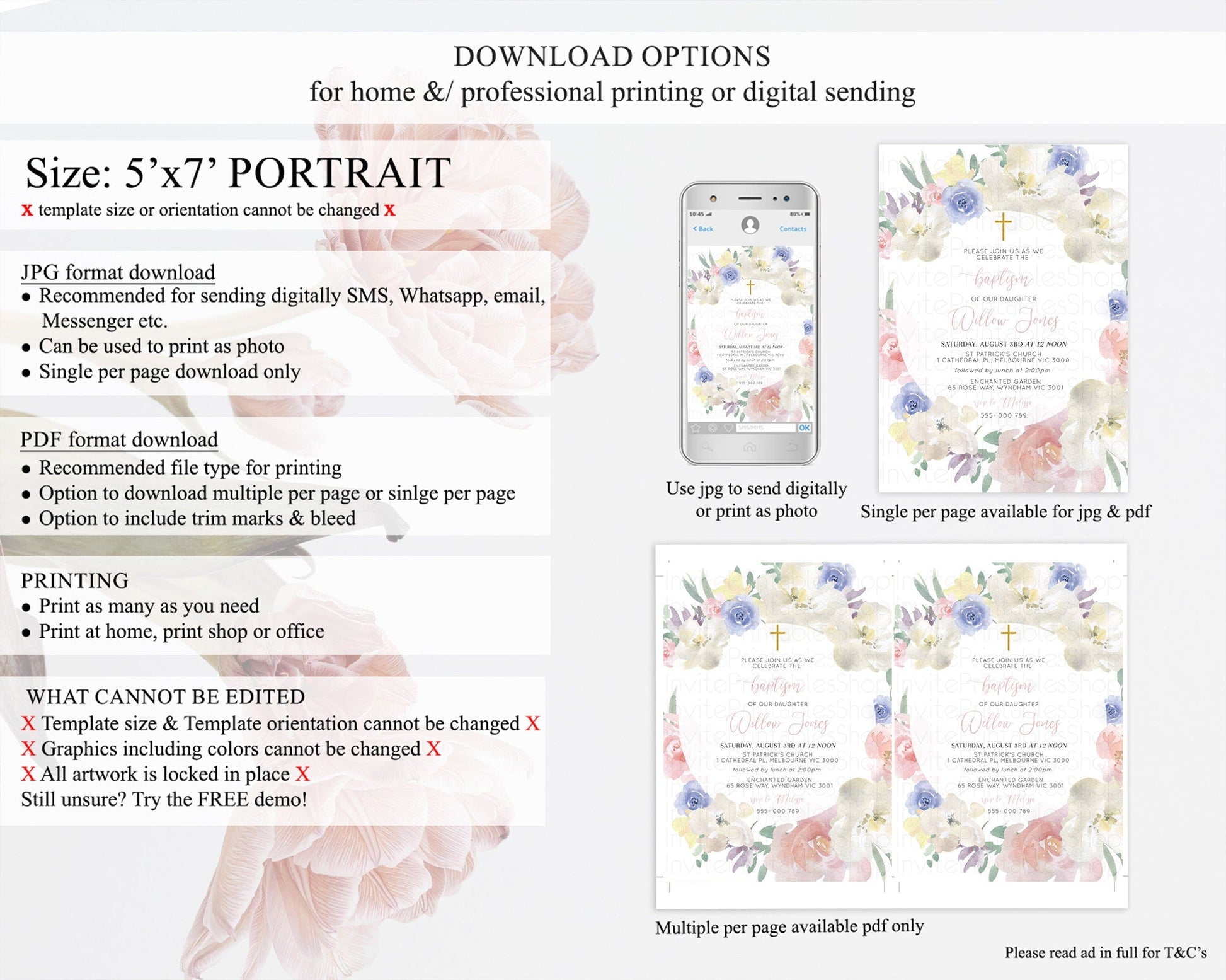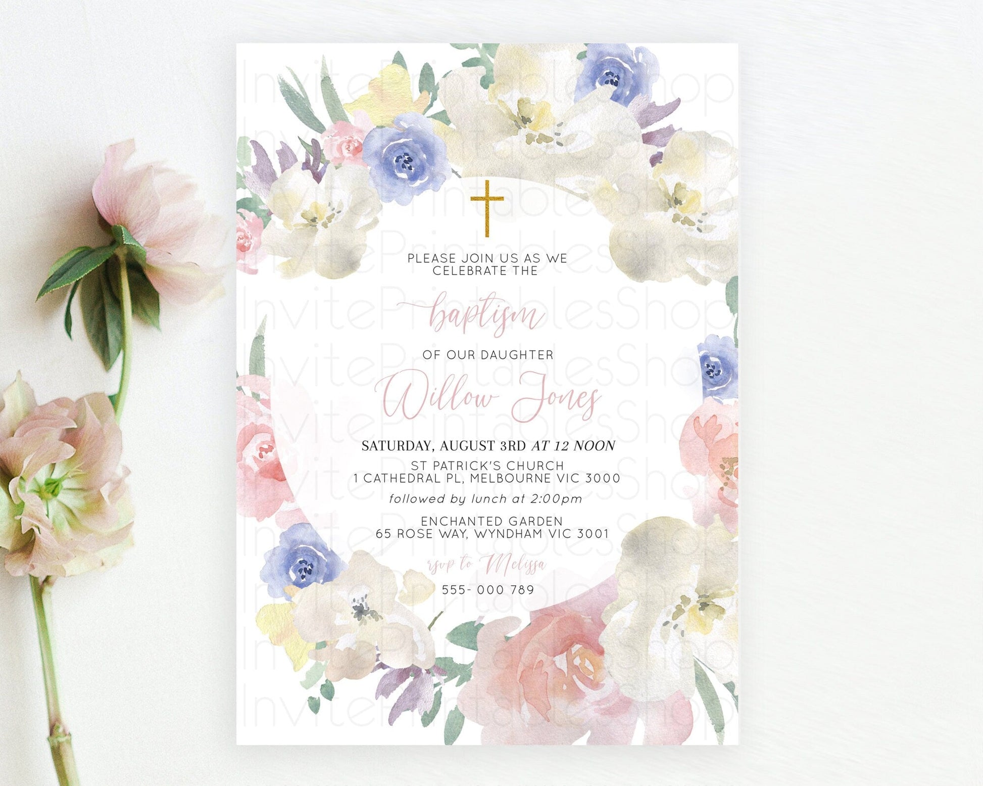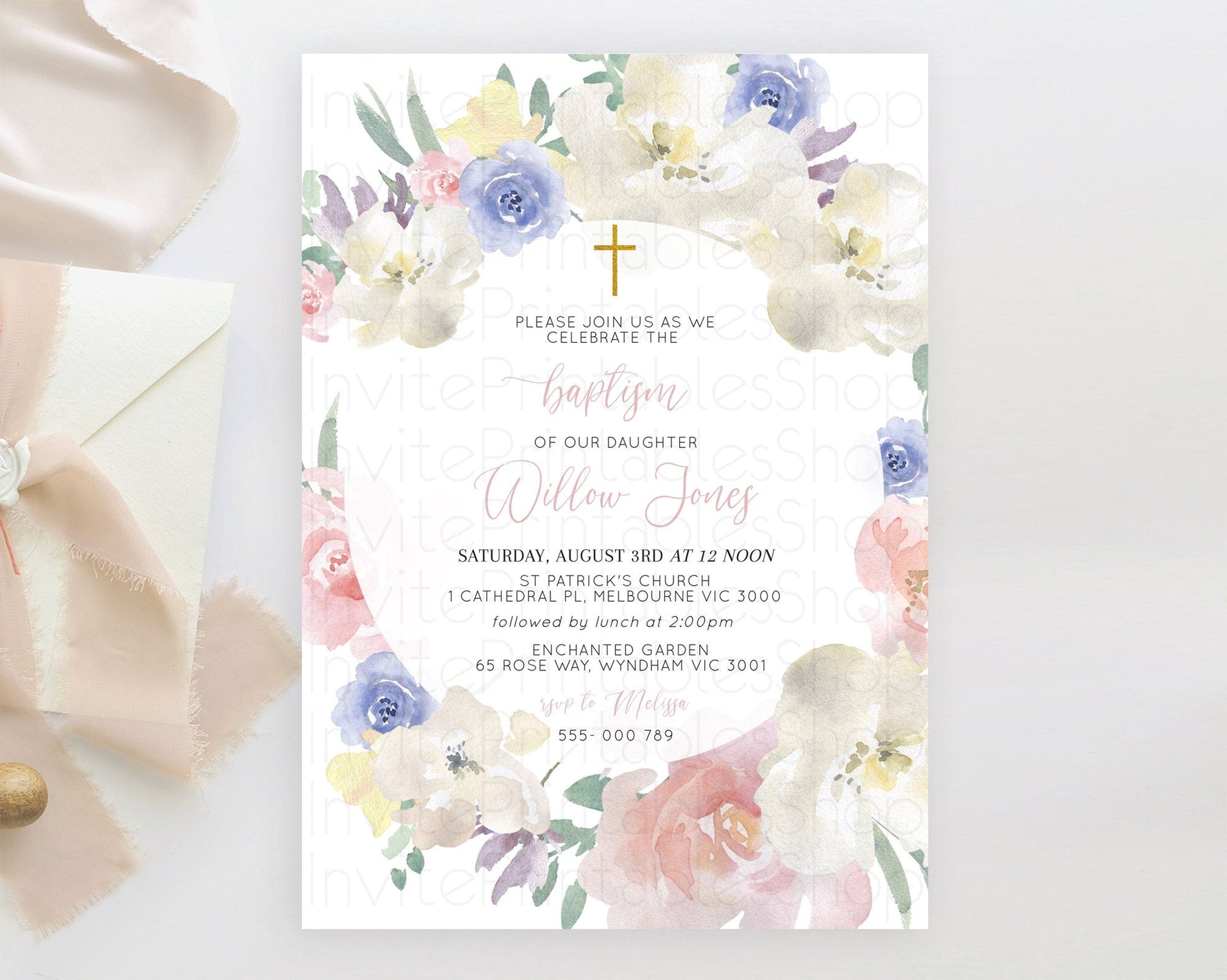 Secret Garden Baptism Invitation Wildflower Baptism Birthday Invite Pastel Flowers Christening Invite Enchanted Garden Boho Floral D10841