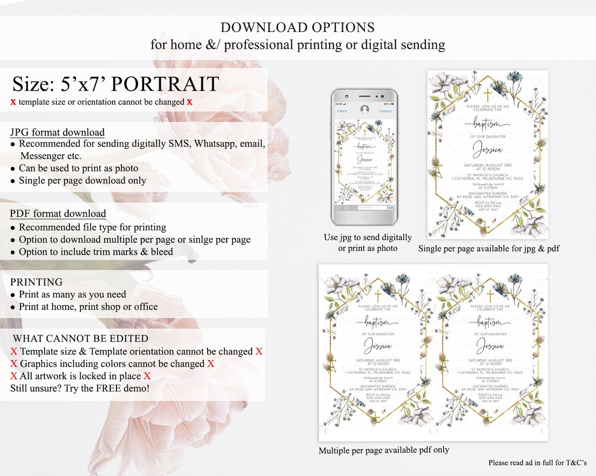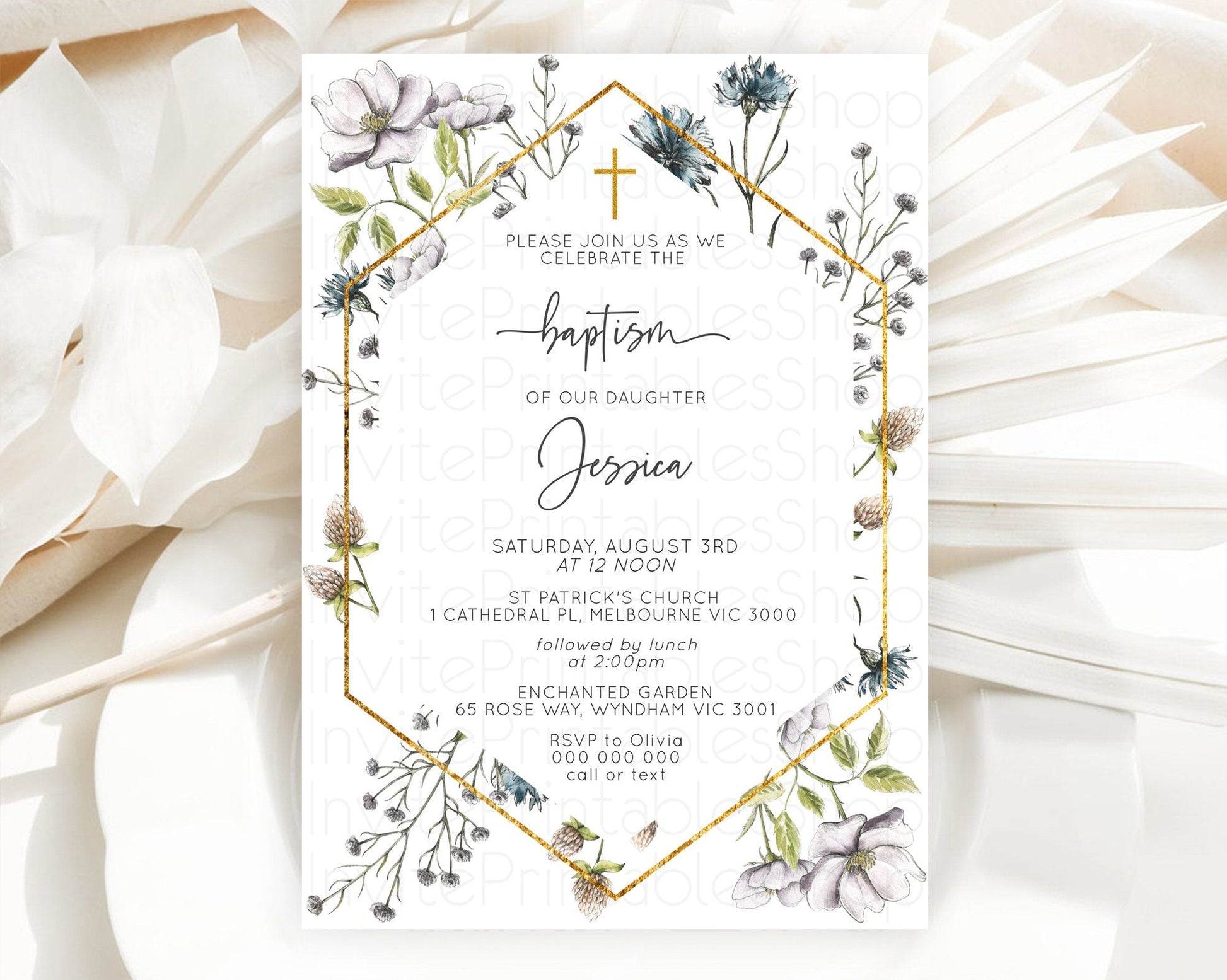 Secret Garden Baptism Invitation Wildflower Baptism Birthday Invite Pastel Flowers Christening Invite Enchanted Garden Boho Floral D11002