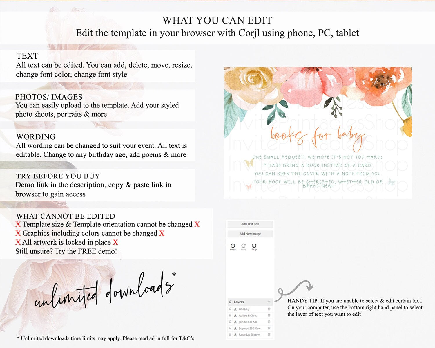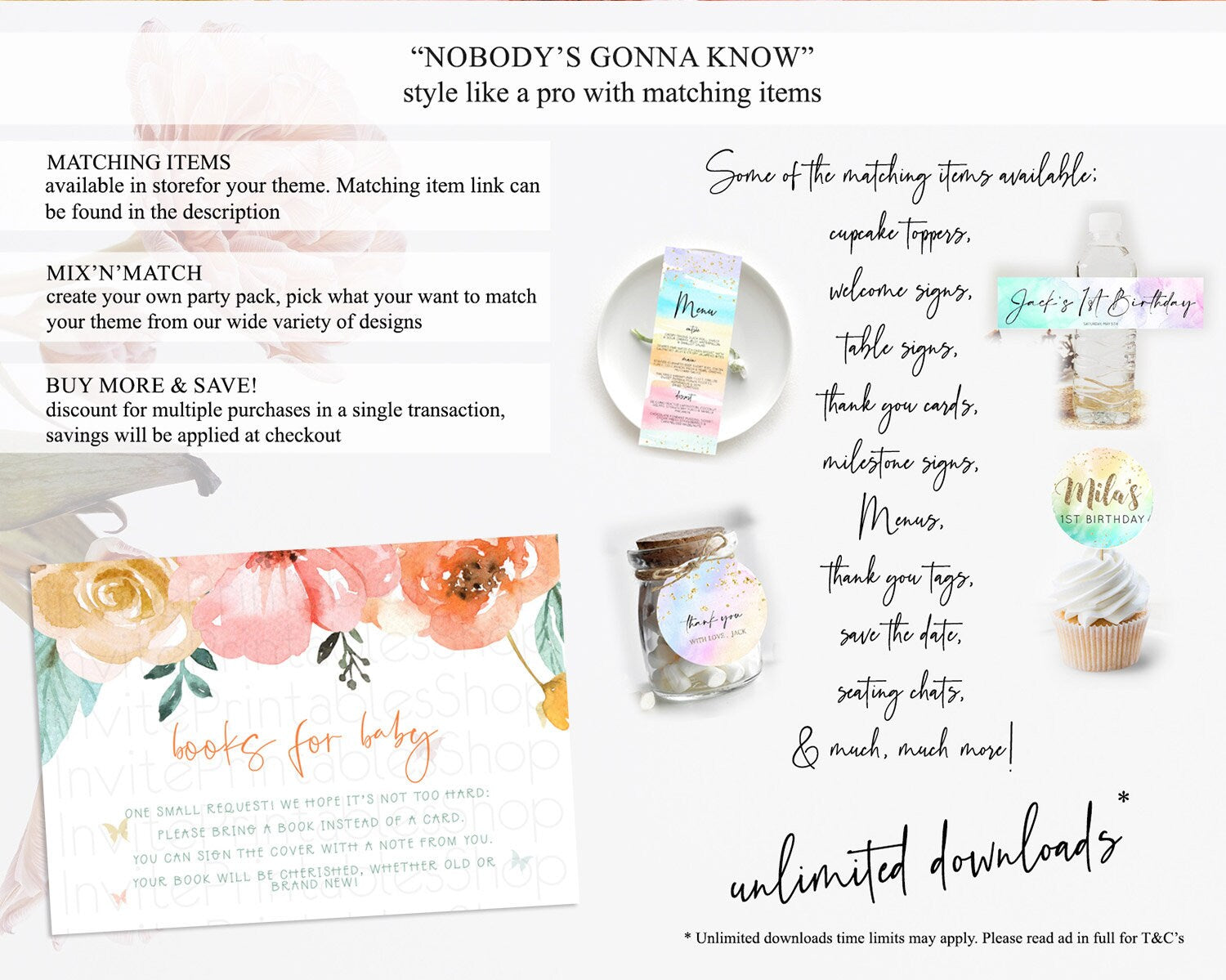 Secret Garden Books For Baby Card Boho Wildflower Book Insert Pastel Flower Garden Baby Shower Card Flower Guests Book Poem Request D10347