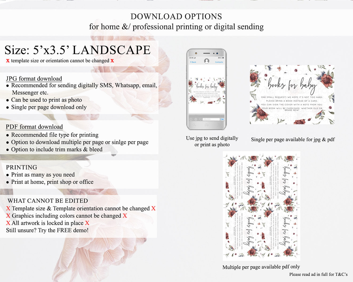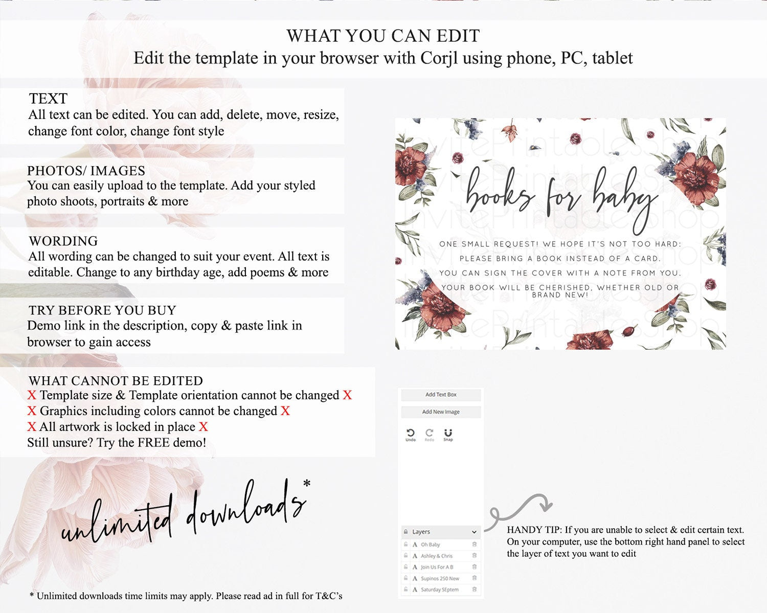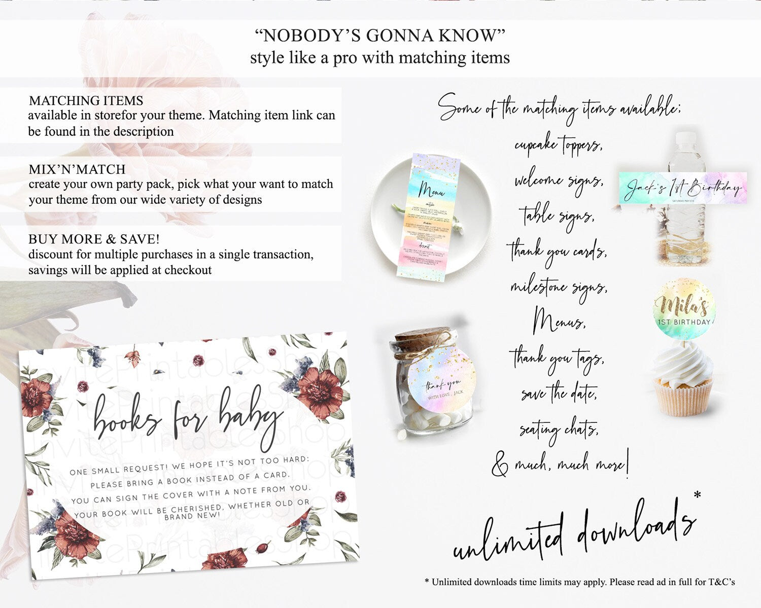 Secret Garden Books For Baby Card Boho Wildflower Book Insert Pastel Flower Garden Baby Shower Card Flower Guests Book Poem Request D10503