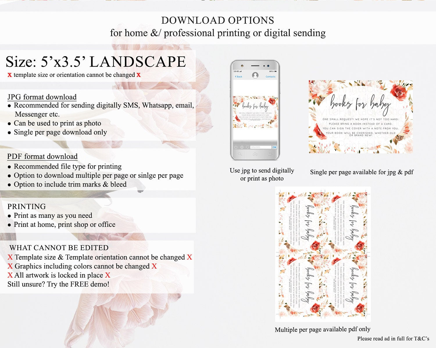 • Template size & orientation cannot be changed. Please use the demo link to confirm this product suits your needs.