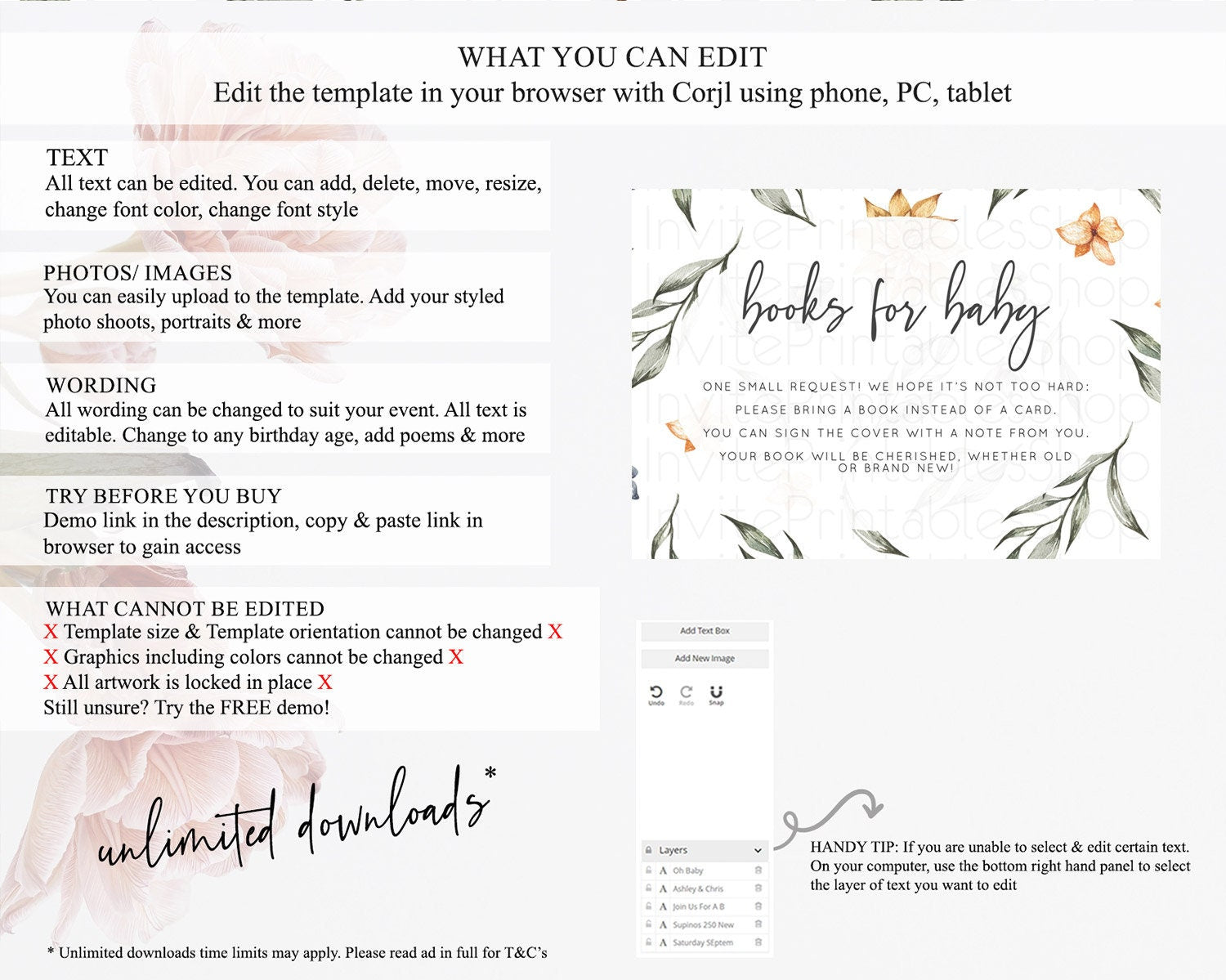 • After purchase, Corjl emails your editing link. Allow up to 15 minutes for delivery.