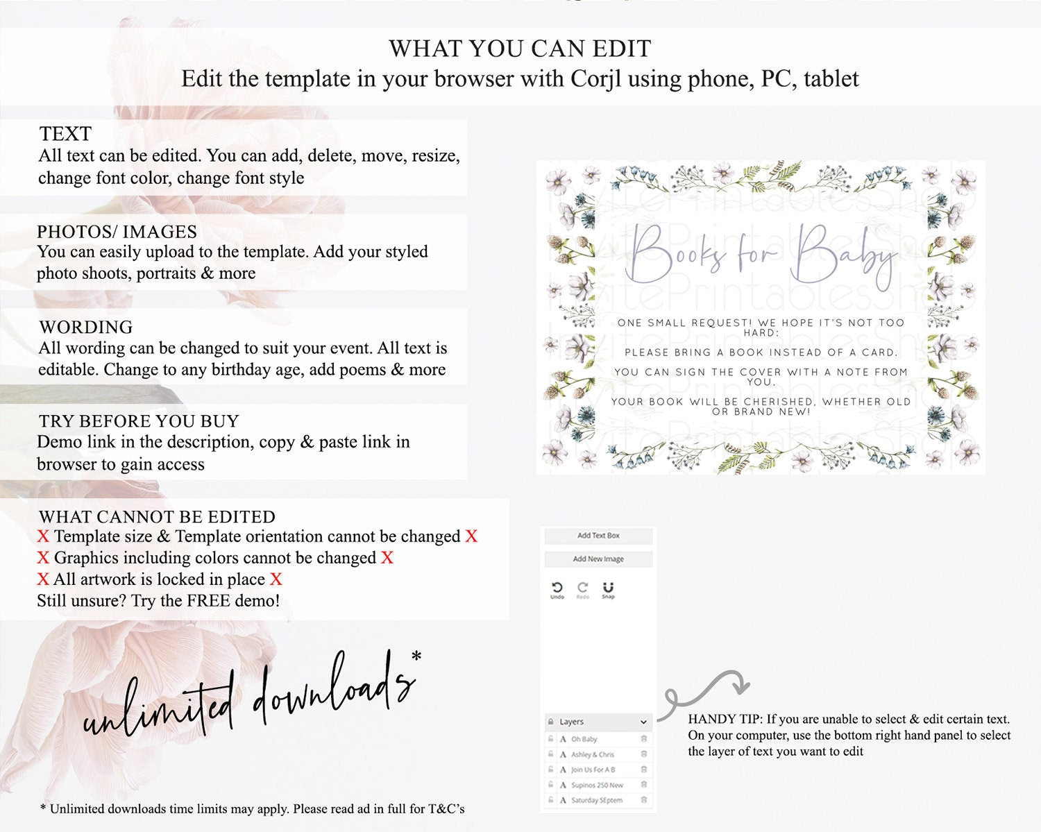 Secret Garden Books For Baby Card Boho Wildflower Book Insert Pastel Flower Garden Baby Shower Card Flower Guests Book Poem Request D10603