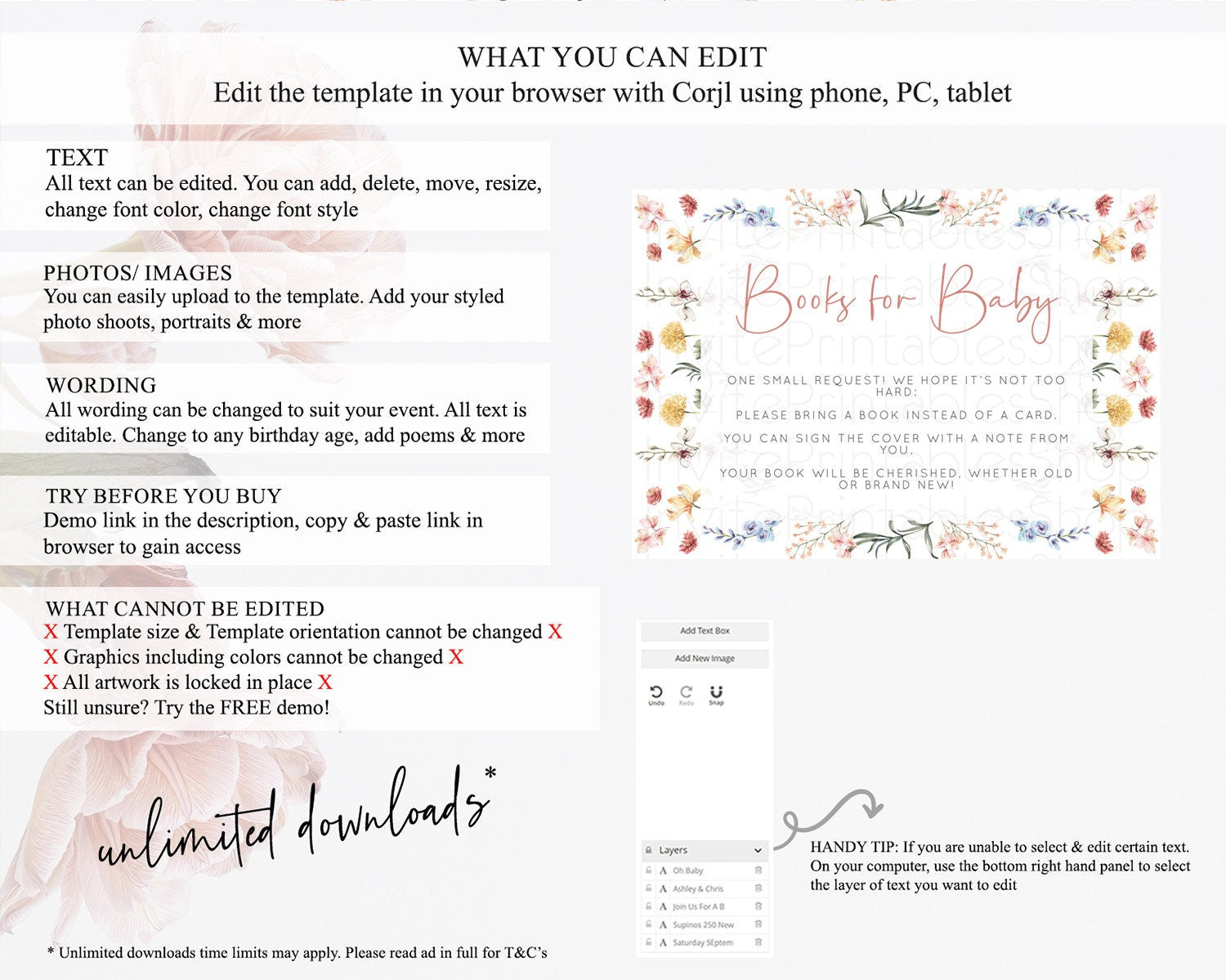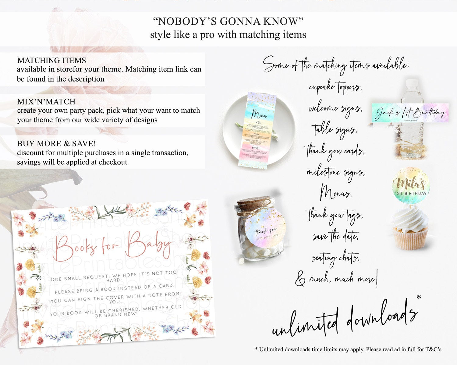 Secret Garden Books For Baby Card Boho Wildflower Book Insert Pastel Flower Garden Baby Shower Card Flower Guests Book Poem Request D10682