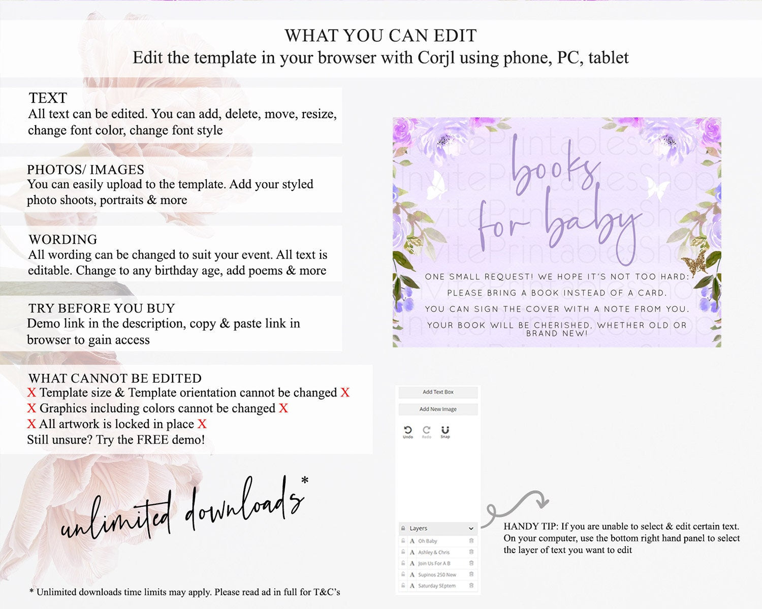 • After purchase, Corjl emails your editing link. Allow up to 15 minutes for delivery.