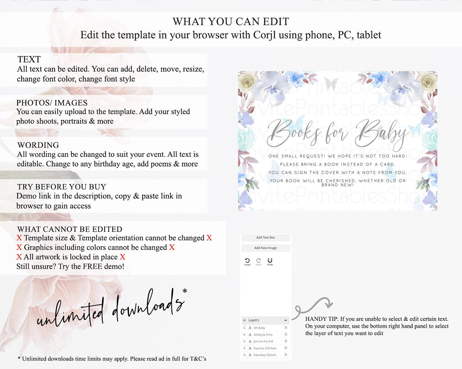 • After purchase, Corjl emails your editing link. Allow up to 15 minutes for delivery.