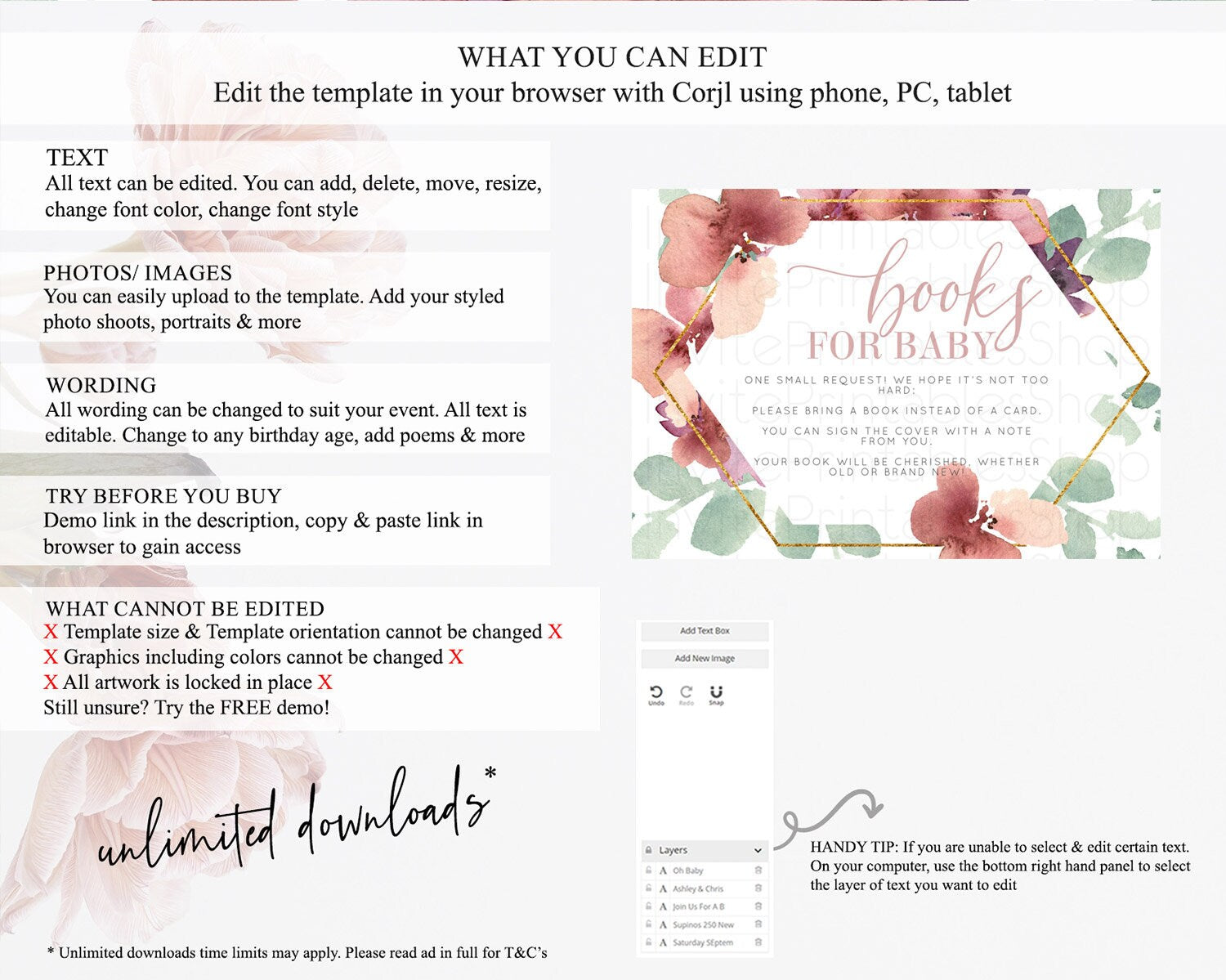 Secret Garden Books For Baby Card Boho Wildflower Book Insert Pastel Flower Garden Baby Shower Card Flower Guests Book Poem Request D10964