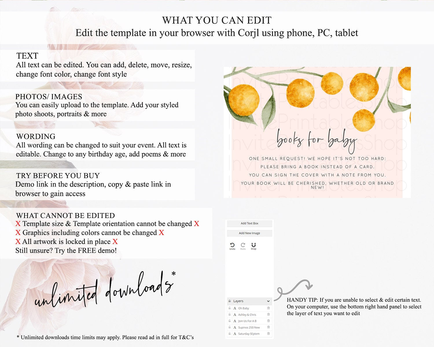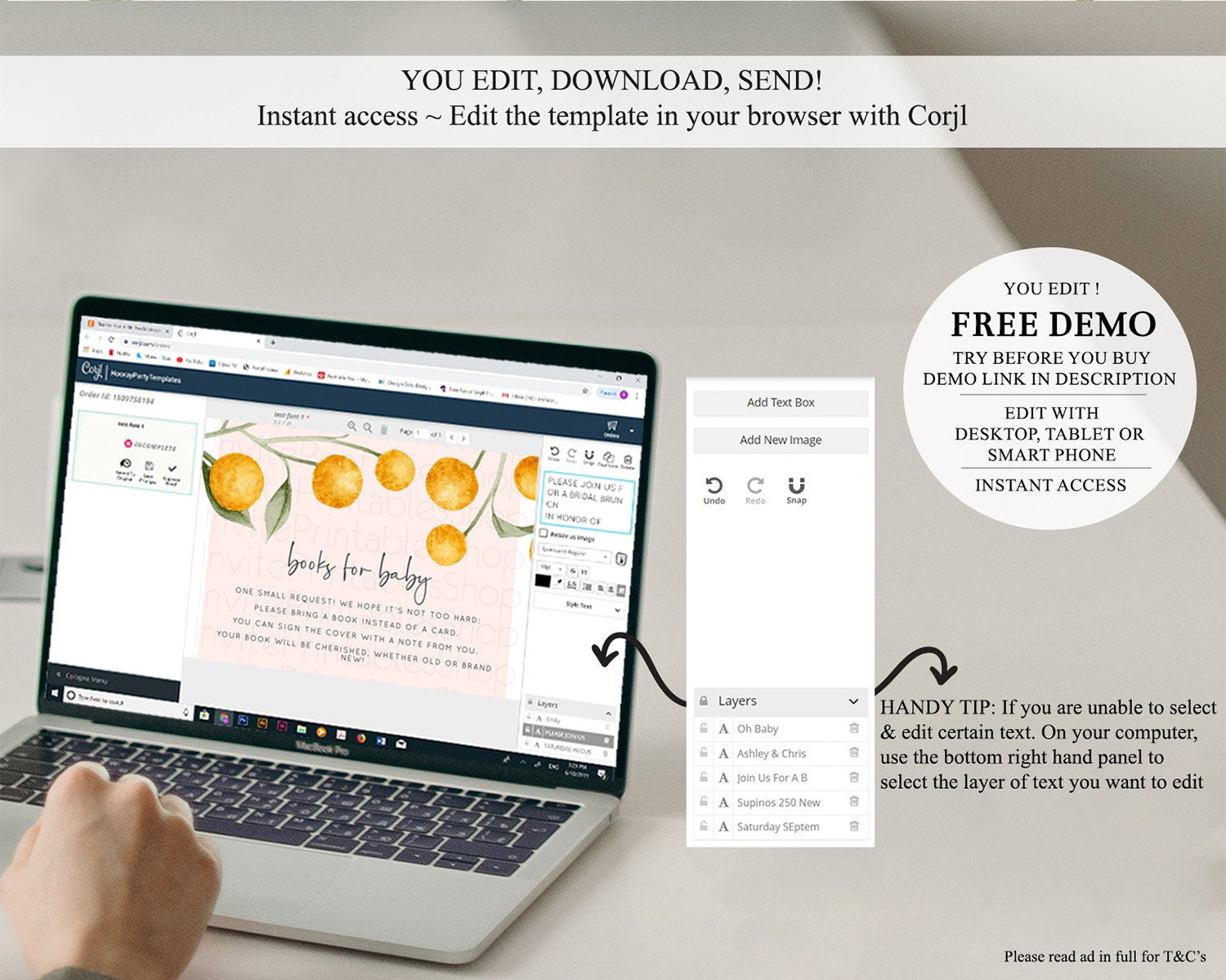 • After purchase, Corjl emails your editing link. Allow up to 15 minutes for delivery.