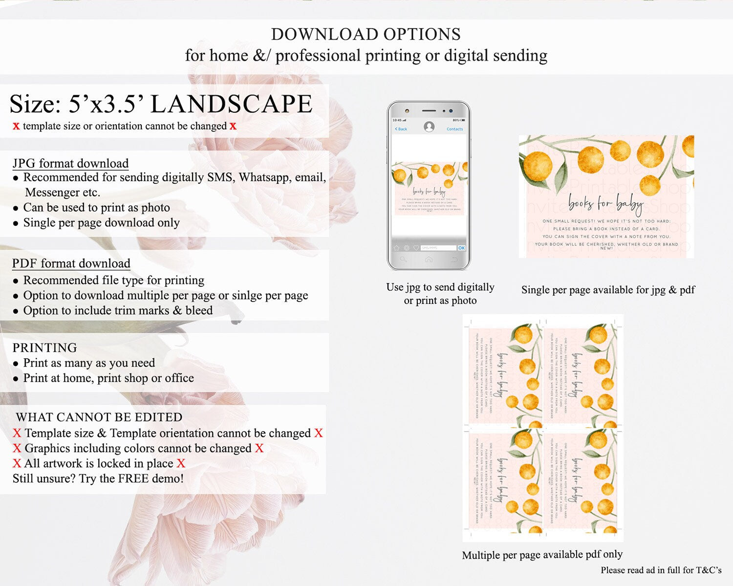 • Template size & orientation cannot be changed. Please use the demo link to confirm this product suits your needs.