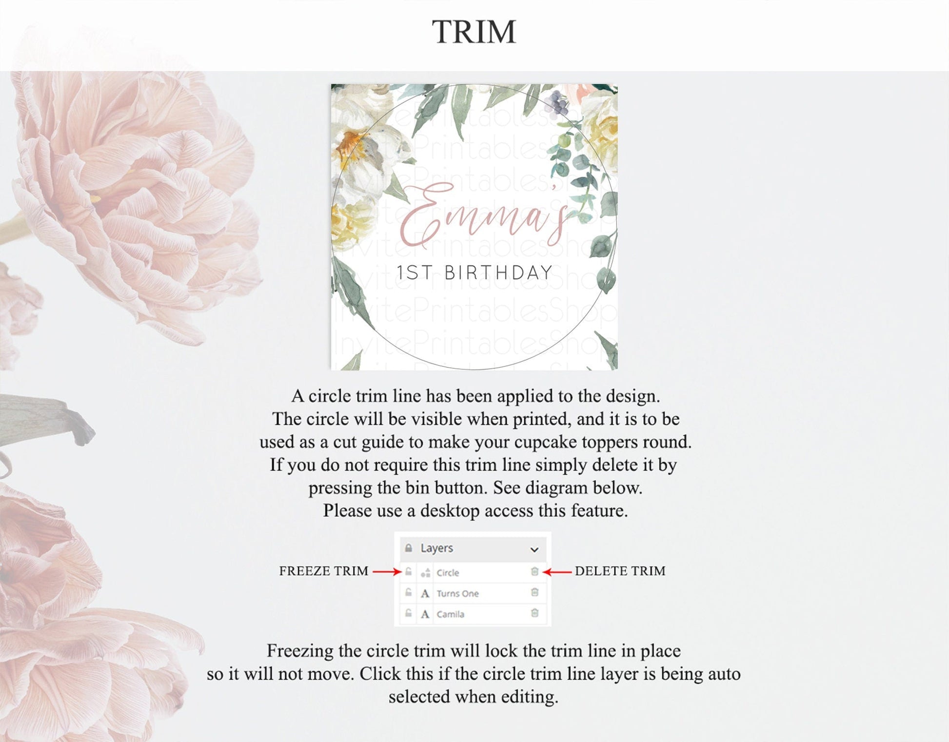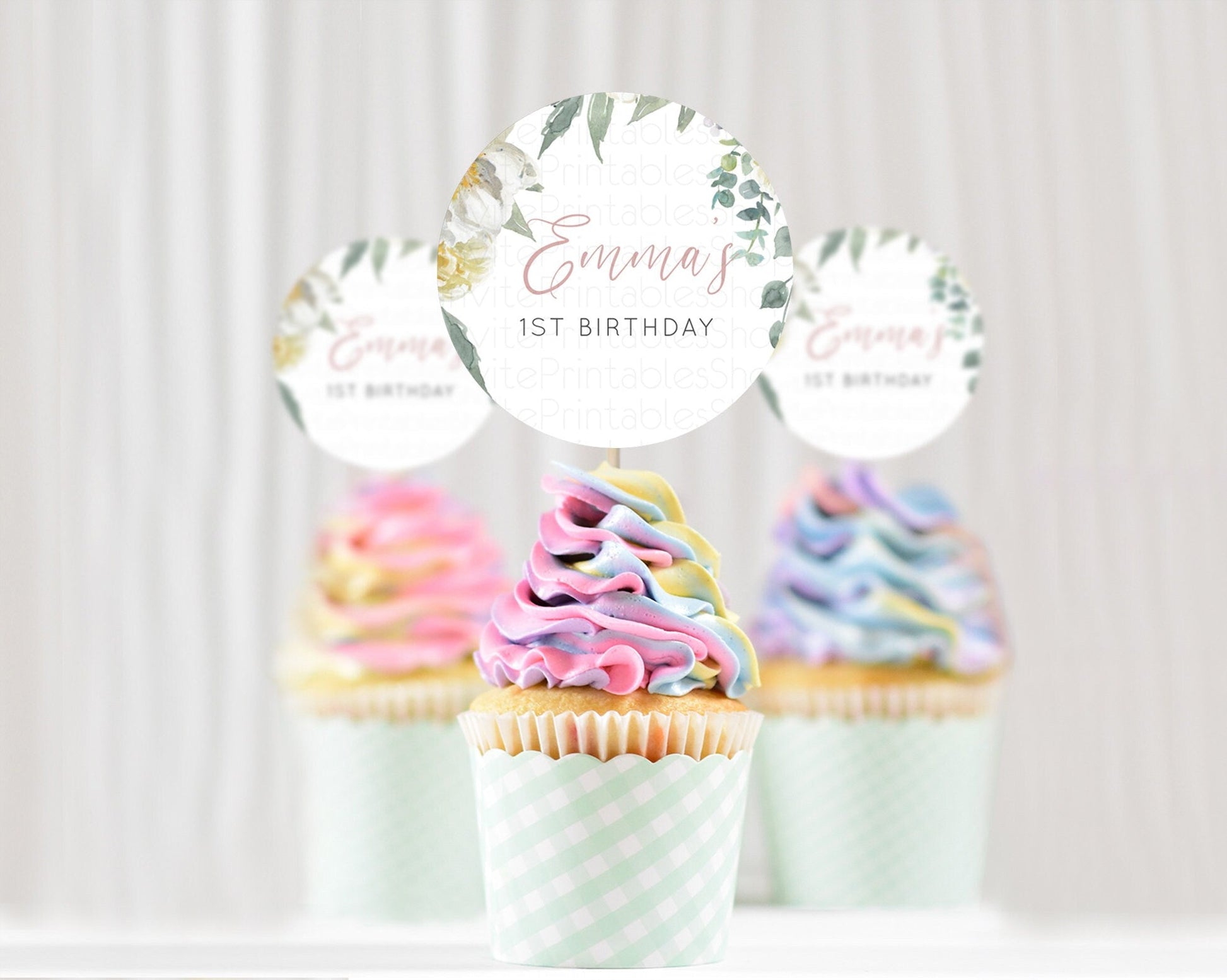 Secret Garden Cupcake Toppers Wildflower Cupcake Topper Pastel White Flowers Topper Enchanted Garden Boho Floral First Birthday Decor D10121