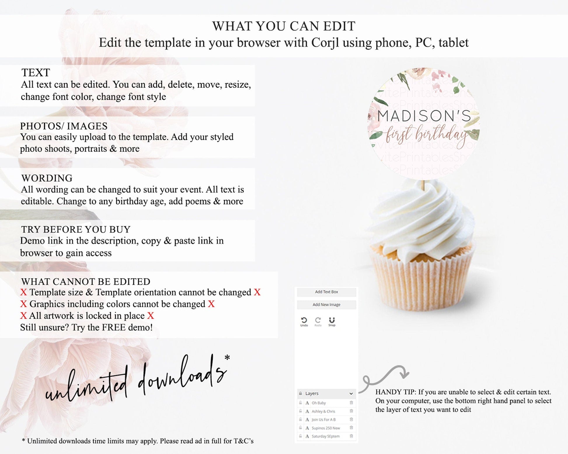 • After purchase, Corjl emails your editing link. Allow up to 15 minutes for delivery.