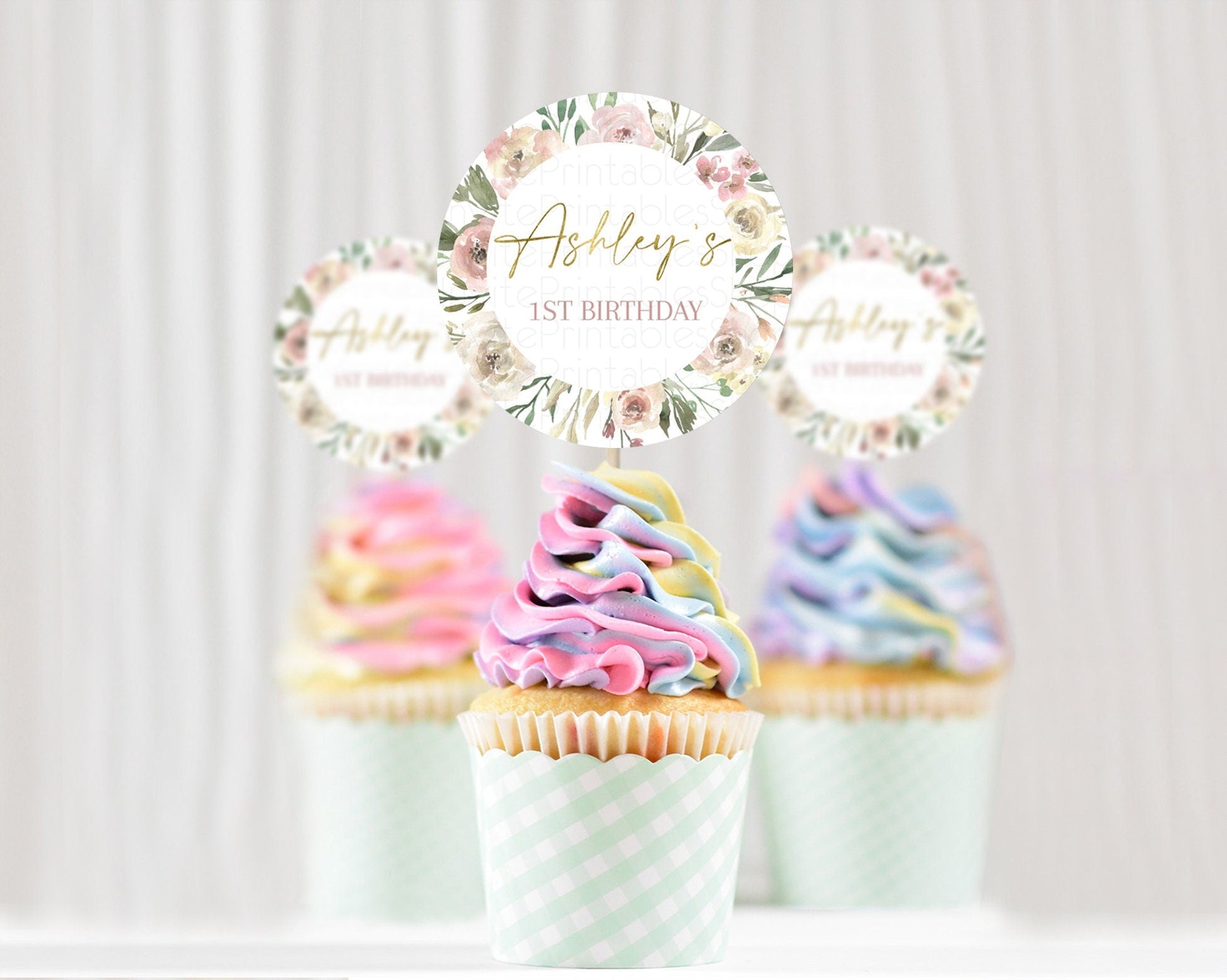 Secret Garden Cupcake Toppers Wildflower Cupcake Toppers Pastel Flowers Cupcake Toppers Enchanted Garden Boho Floral First Birthday D10202