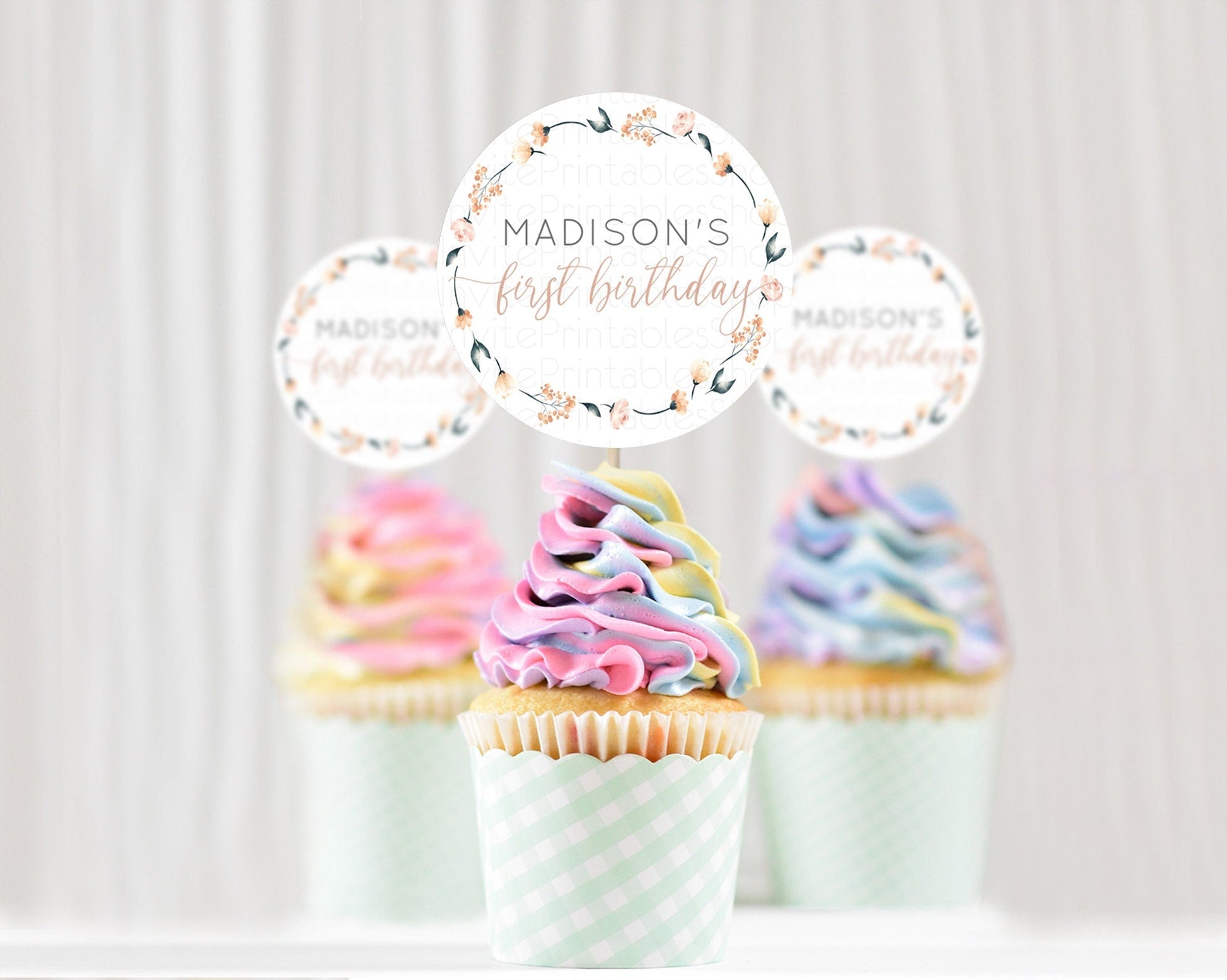 Secret Garden Cupcake Toppers Wildflower Cupcake Toppers Pastel Flowers Cupcake Toppers Enchanted Garden Boho Floral First Birthday D10240