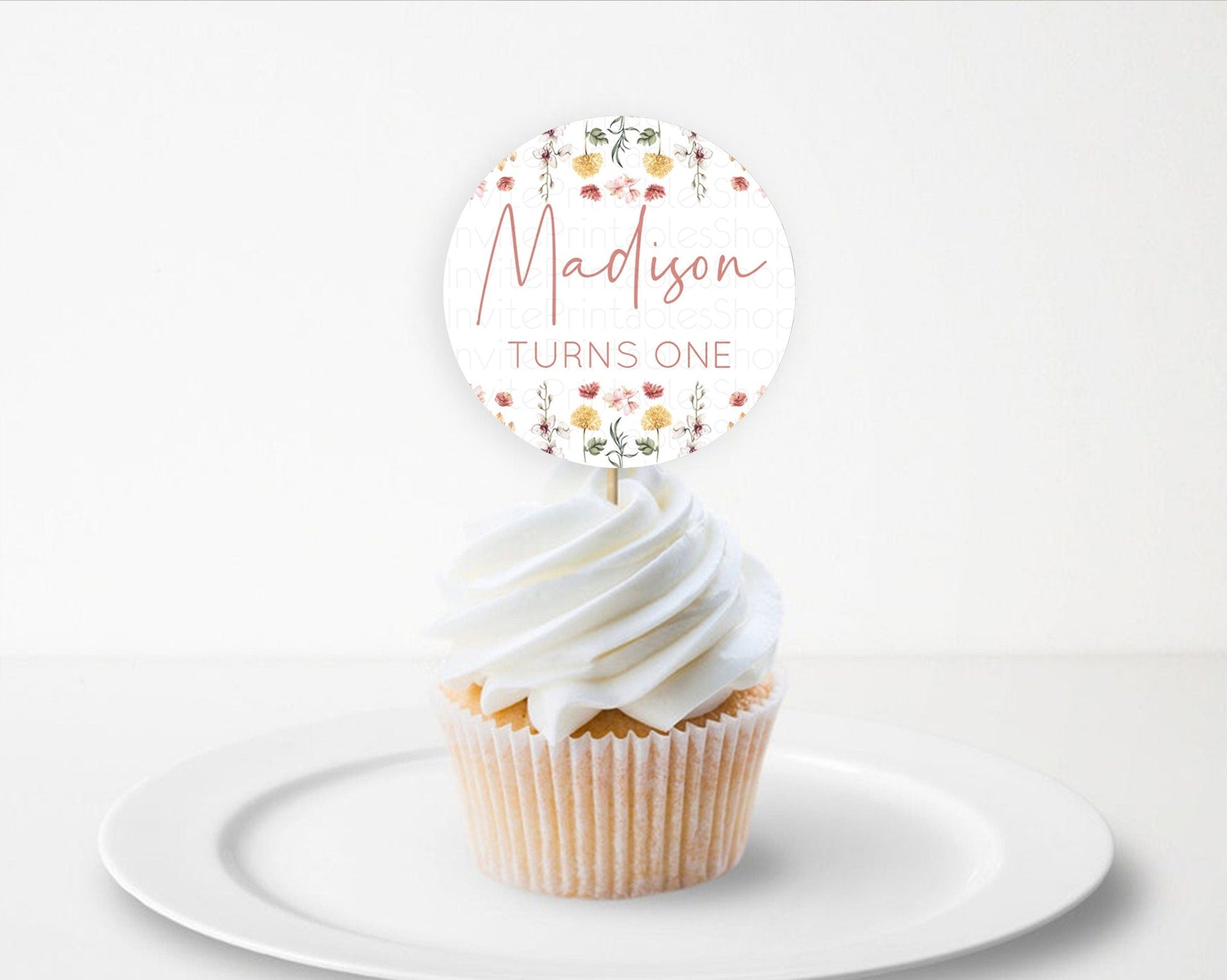 Secret Garden Cupcake Toppers Wildflower Cupcake Toppers Pastel Flowers Cupcake Toppers Enchanted Garden Boho Floral First Birthday D10682