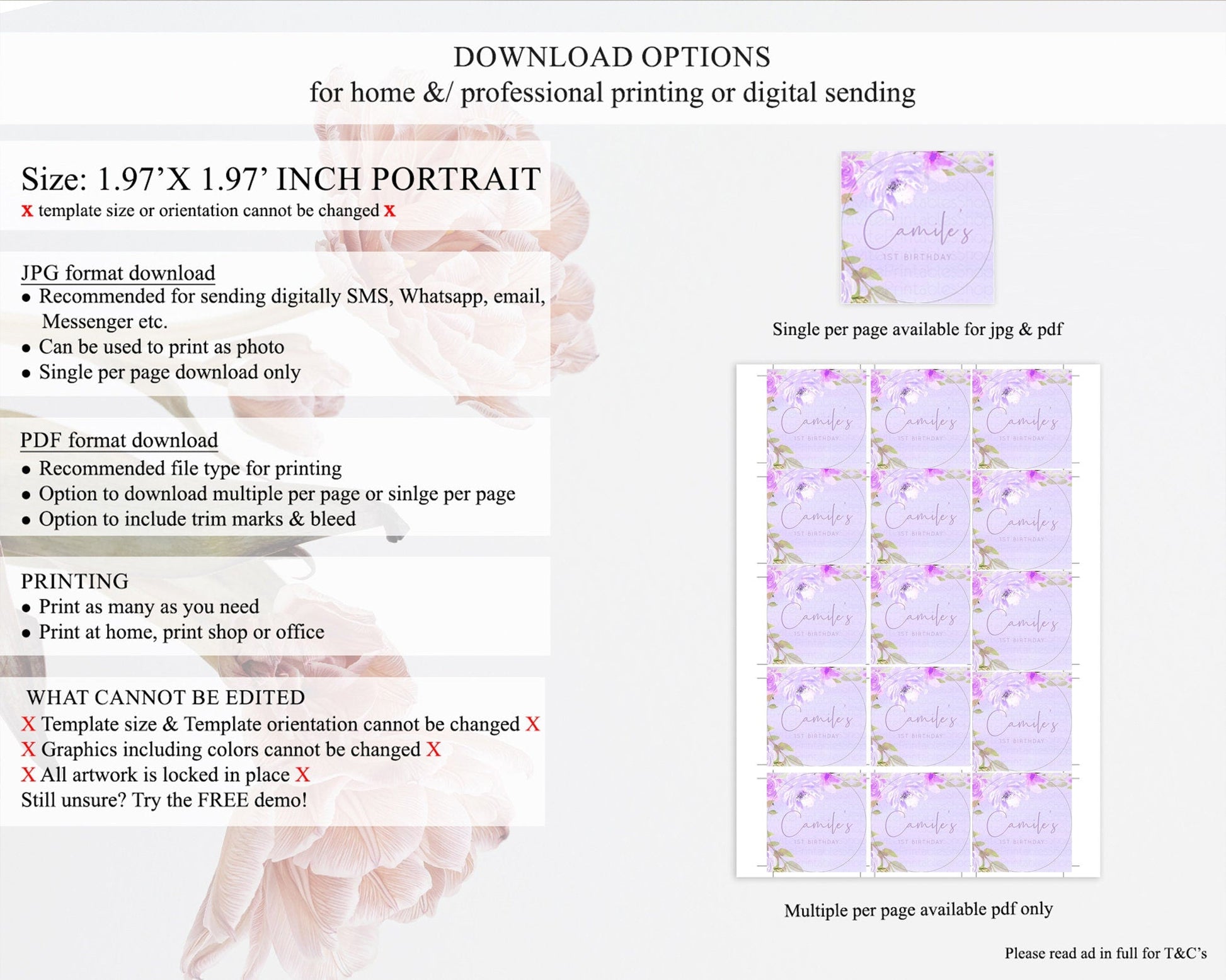 • Template size & orientation cannot be changed. Please use the demo link to confirm this product suits your needs.