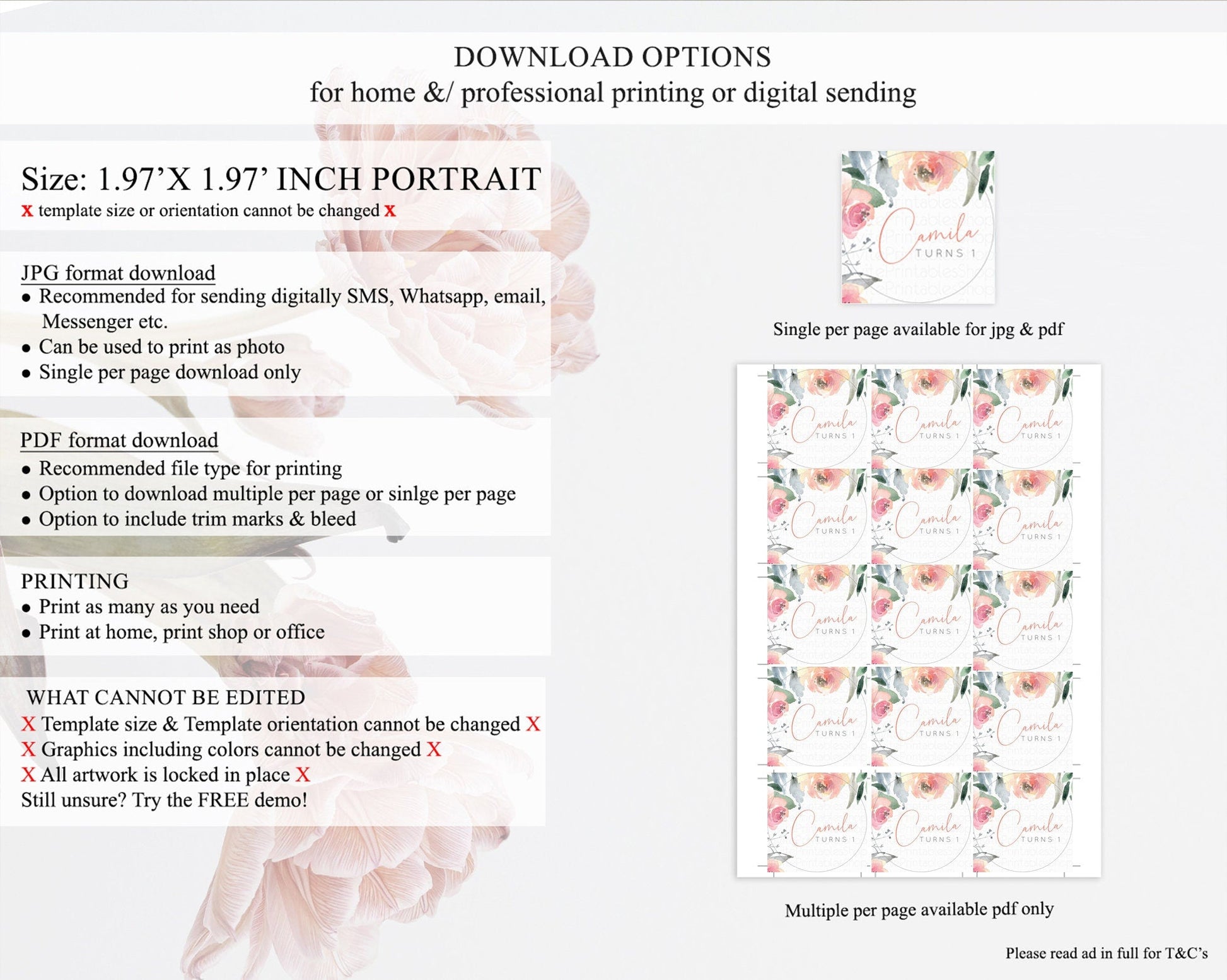 • Template size & orientation cannot be changed. Please use the demo link to confirm this product suits your needs.
