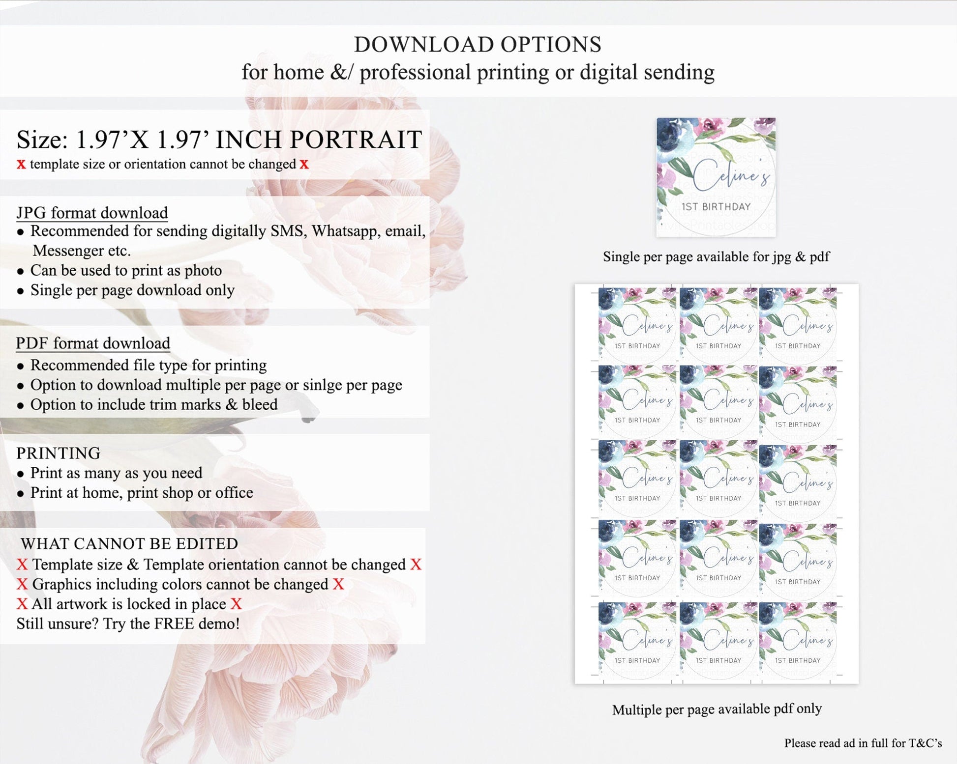 • Template size & orientation cannot be changed. Please use the demo link to confirm this product suits your needs.